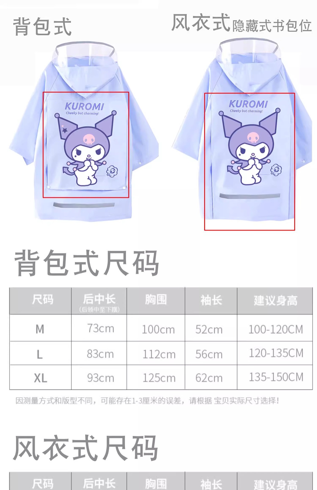 산리오 어린이 판초 초등학생 남학생과 여학생을위한 특수 비옷 긴 바디 방수 단일 방수스토어 가기