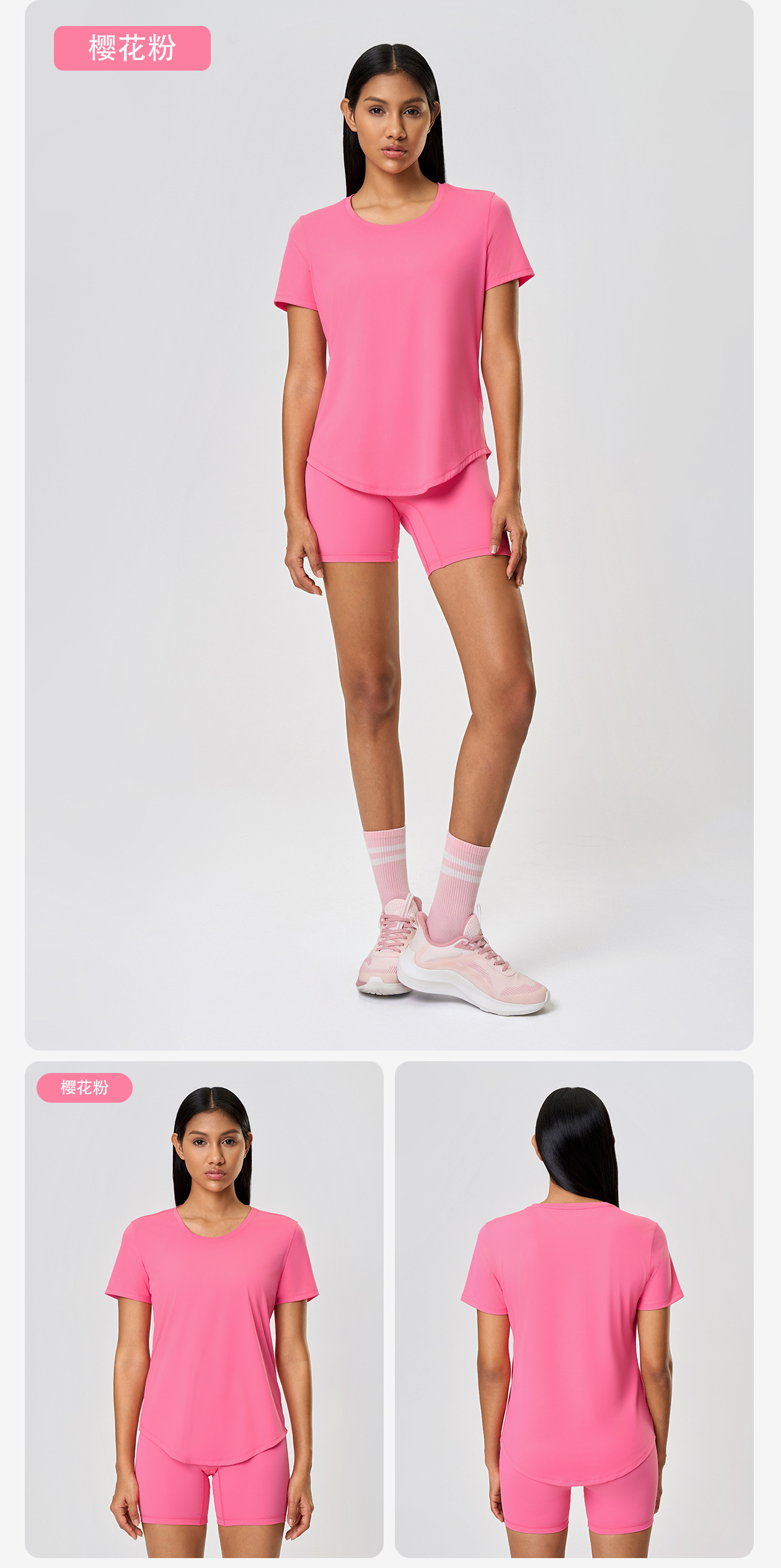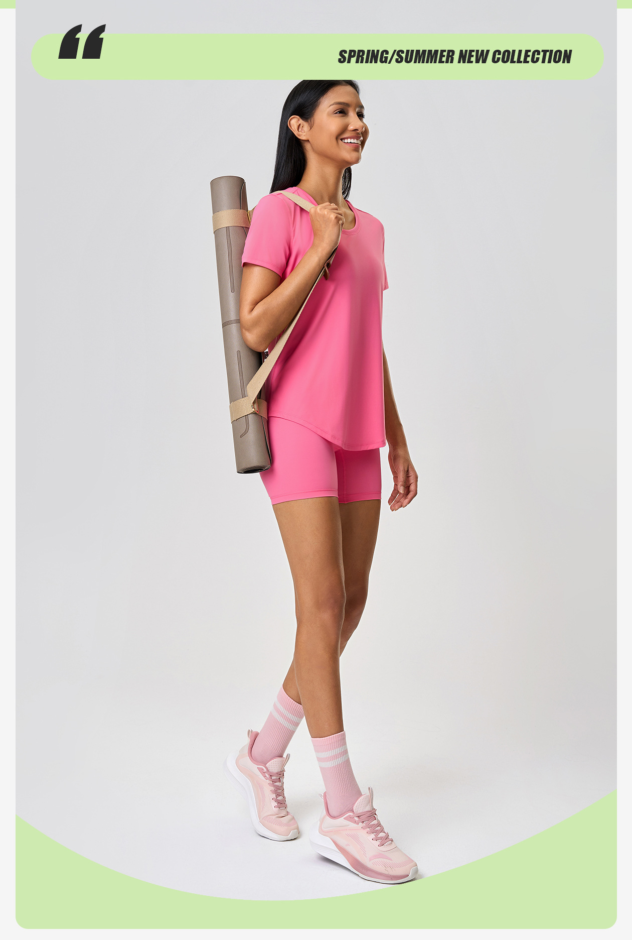 공장 직접 여름 새로운 느슨한 샌딩 요가 짧은 소매 통기성 스포츠 달리기 피트니스 세트 여성 DS075