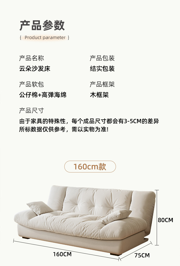 클라우드 소파 침대 듀얼 사용 접이식 침대 거실 작은 아파트 공장 재고 크림 인터넷 인기있는 접이식 소파 침대