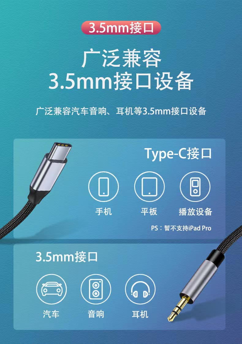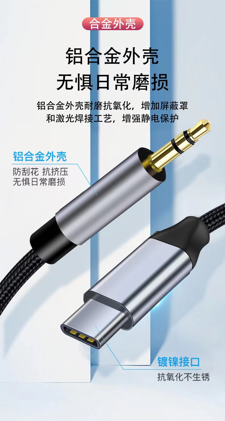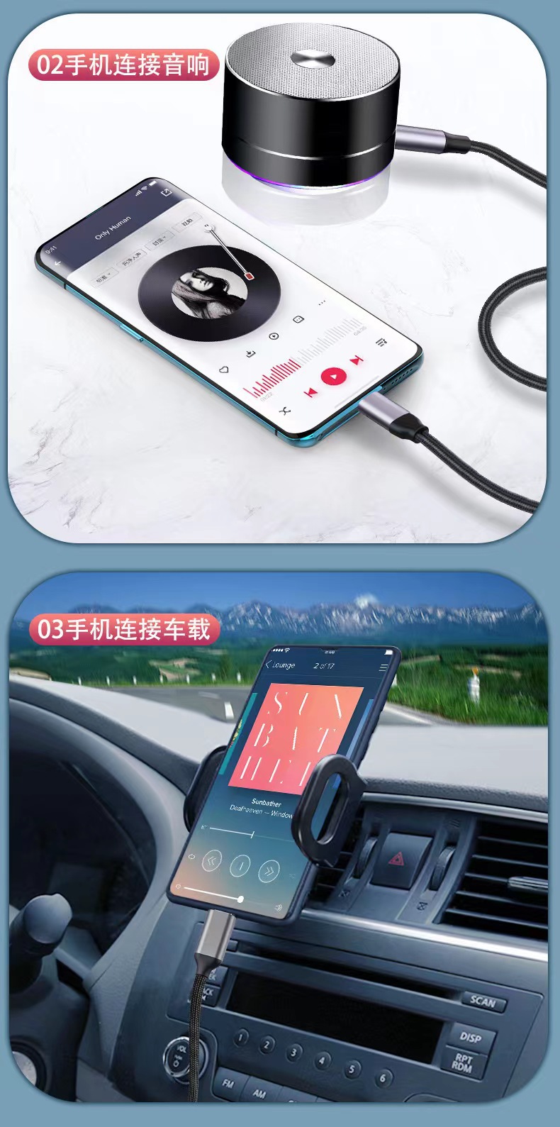 유형 c-3.5mm 오디오 케이블 aux 오디오 케이블 휴대 전화 자동차 스피커 오디오 케이블 헤드셋 케이블