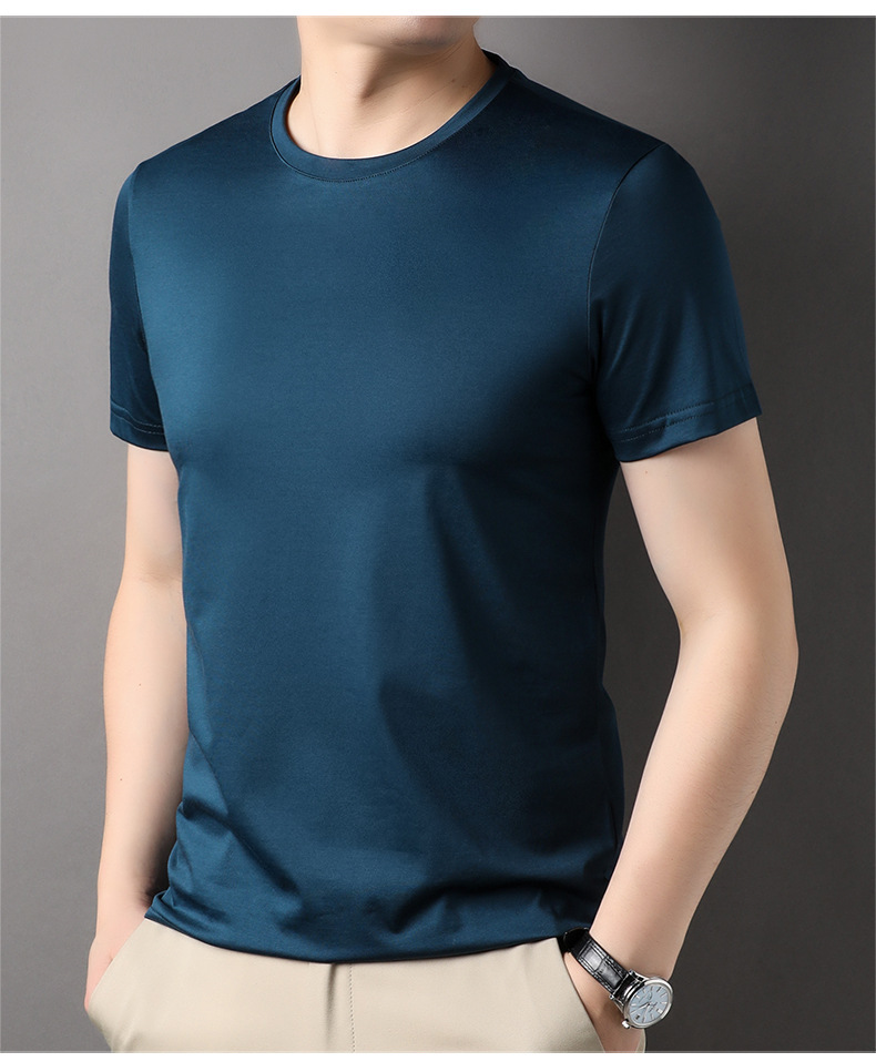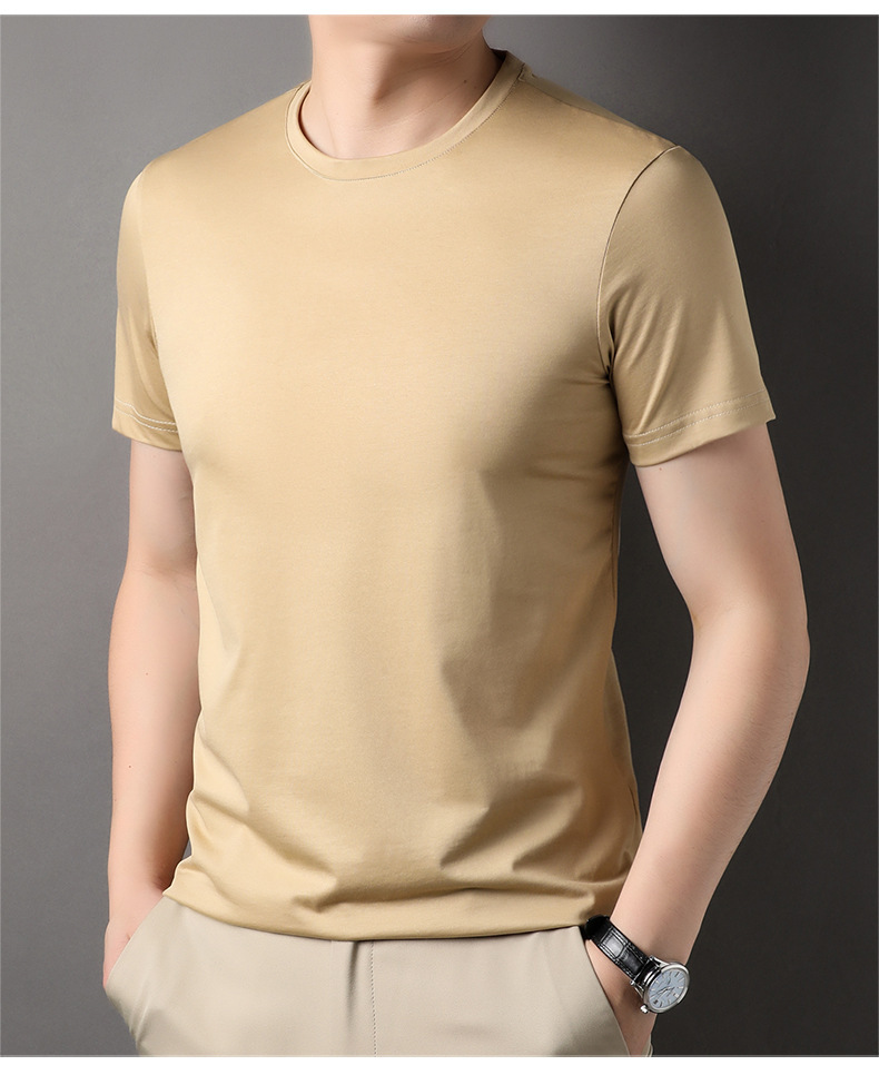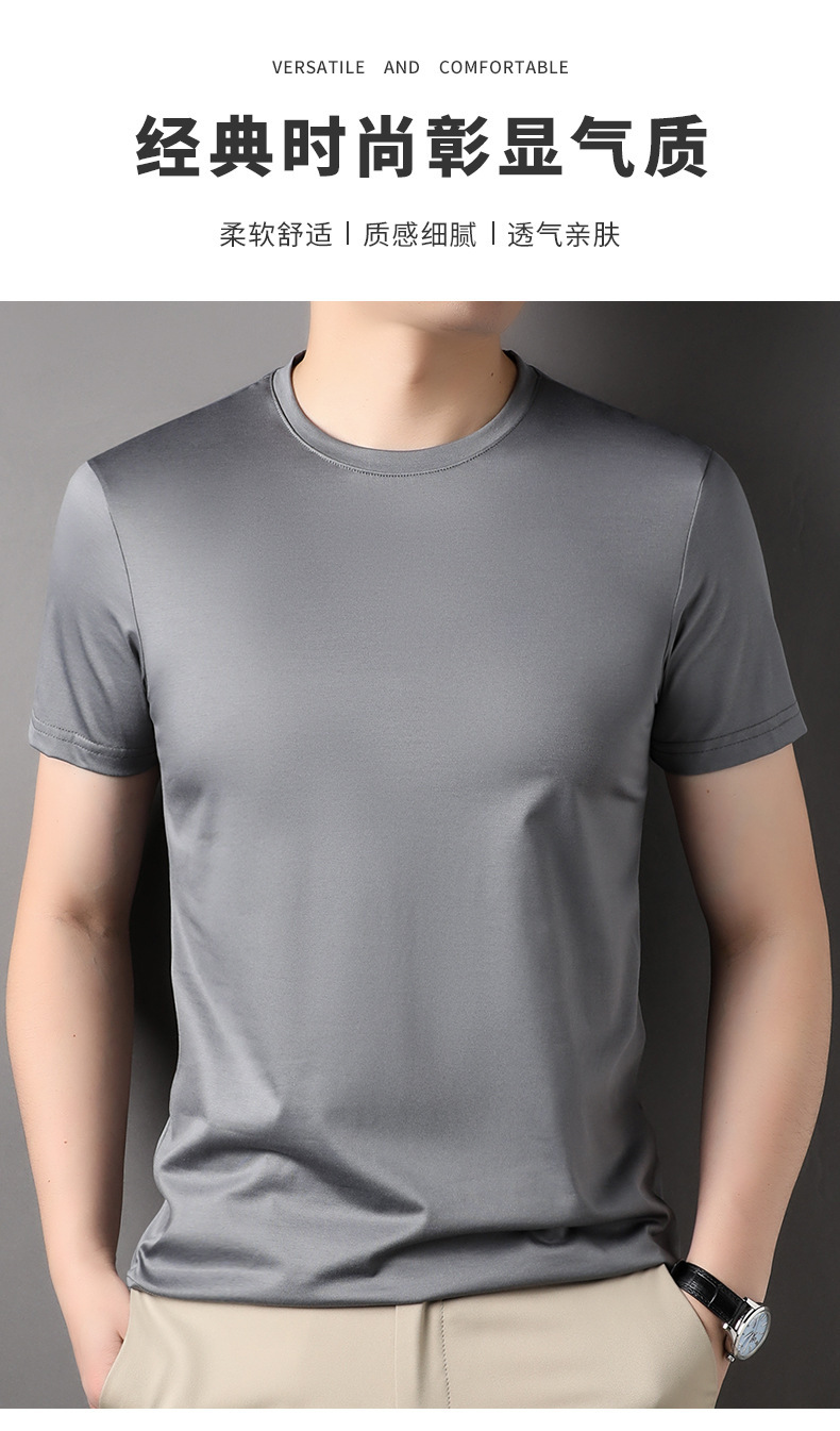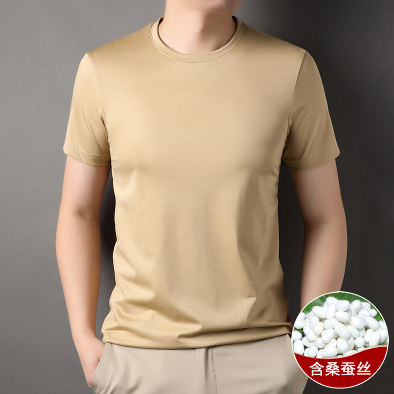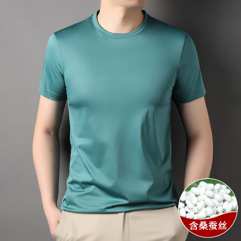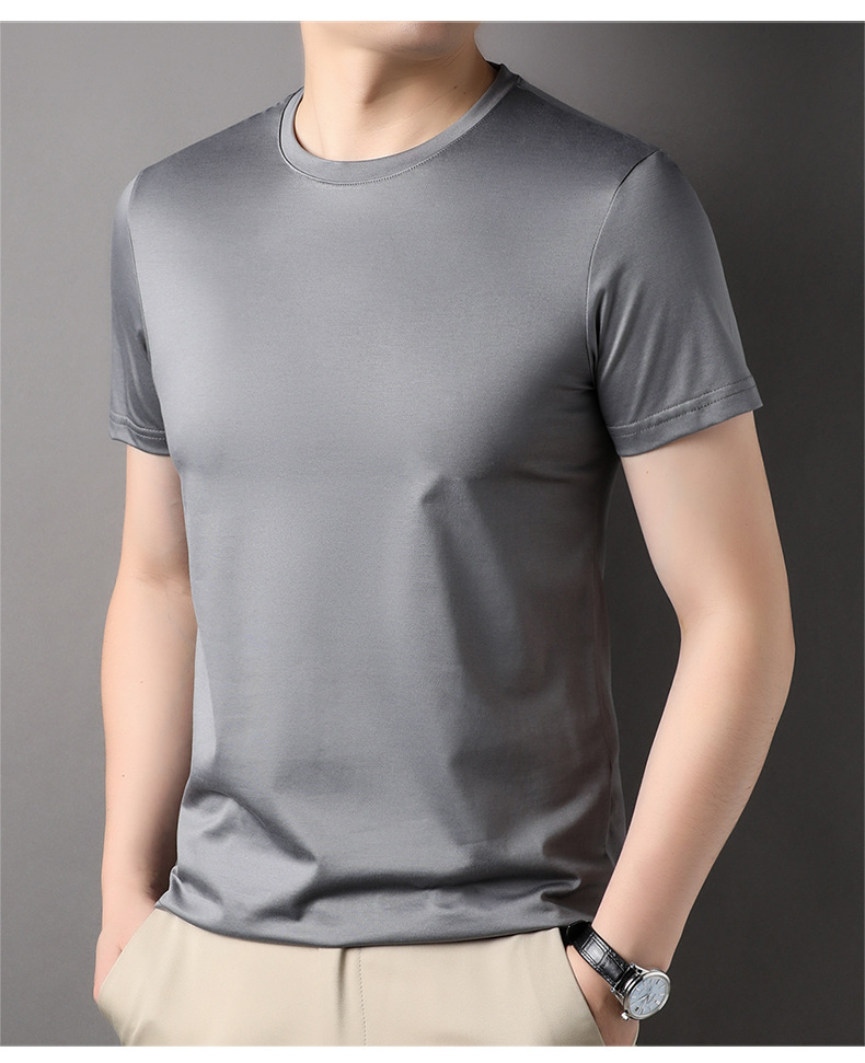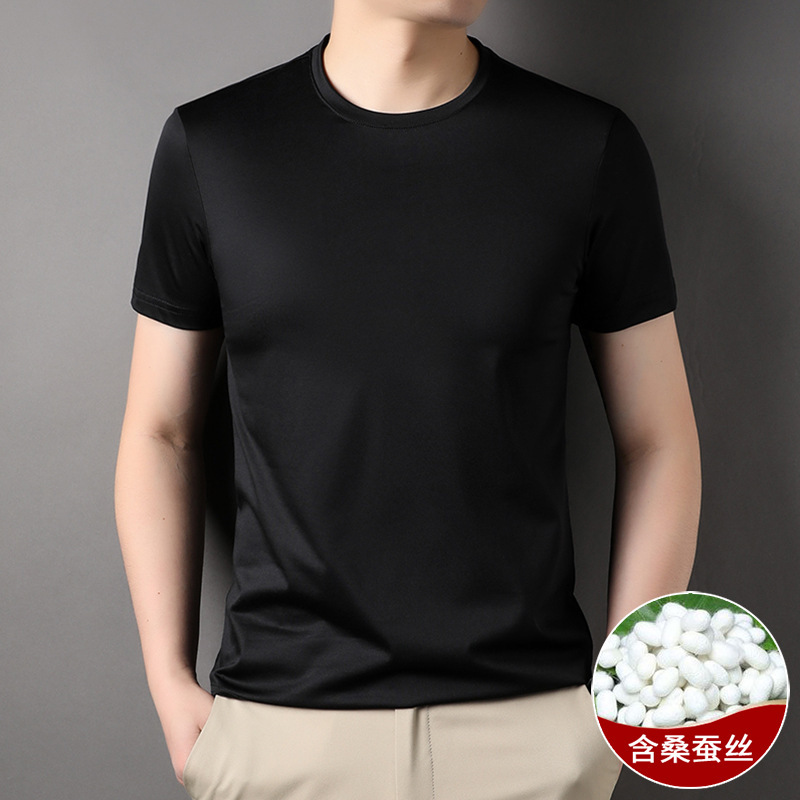 2024夏季新款桑蚕丝t恤男装短袖韩版休闲修身青年圆领纯色男士T恤