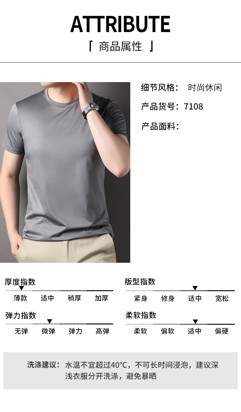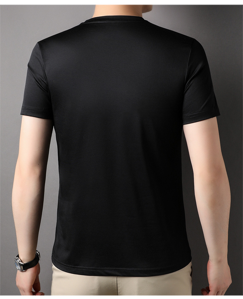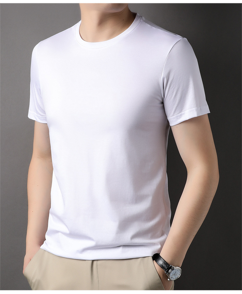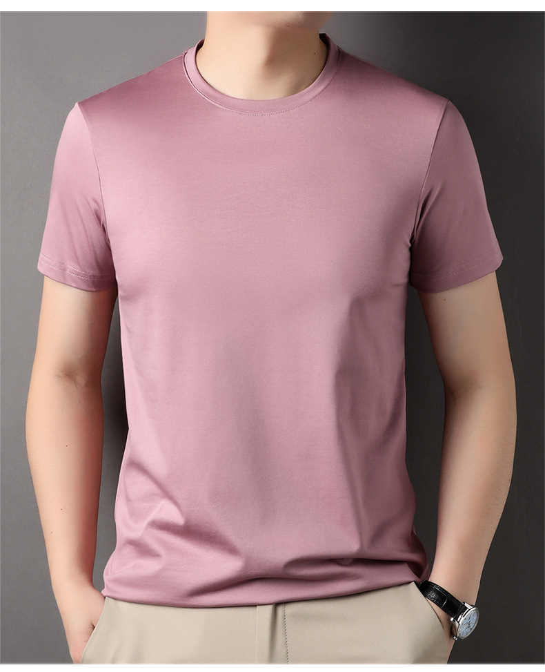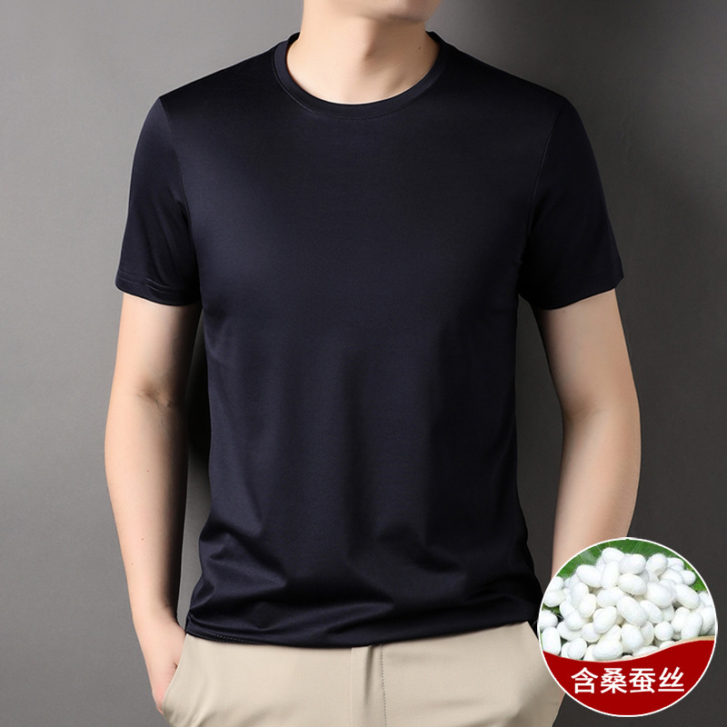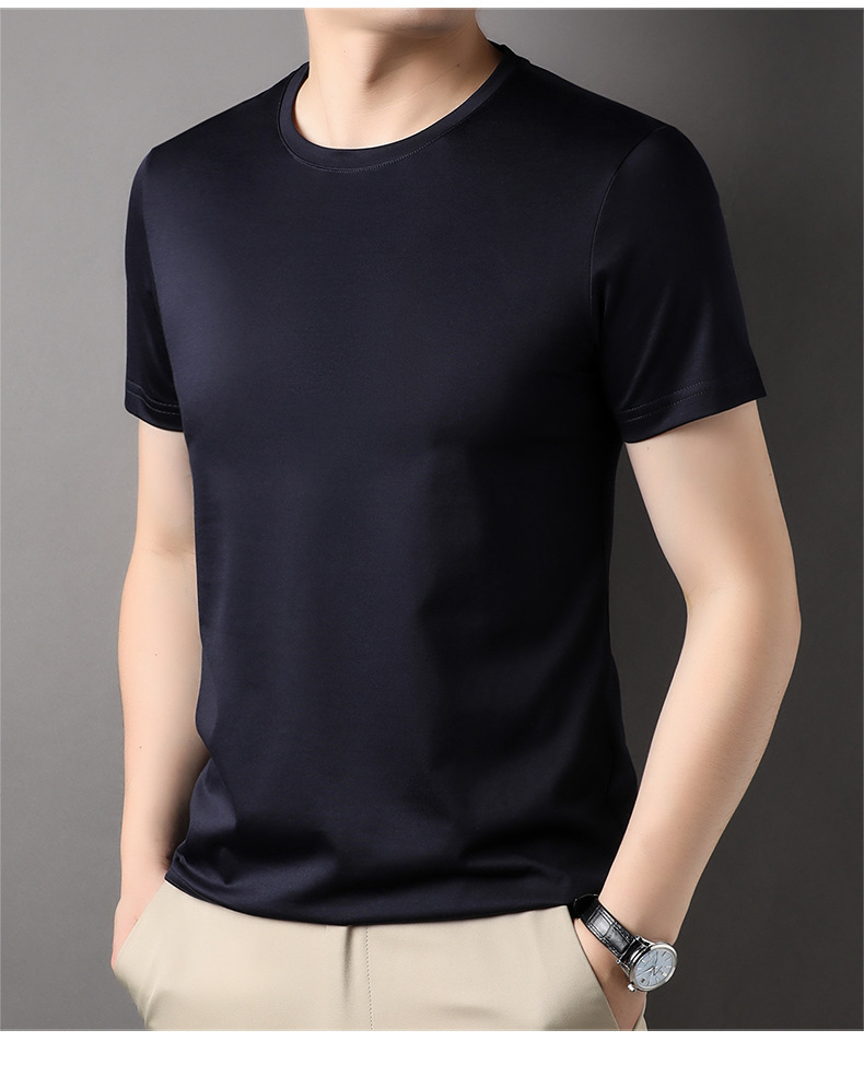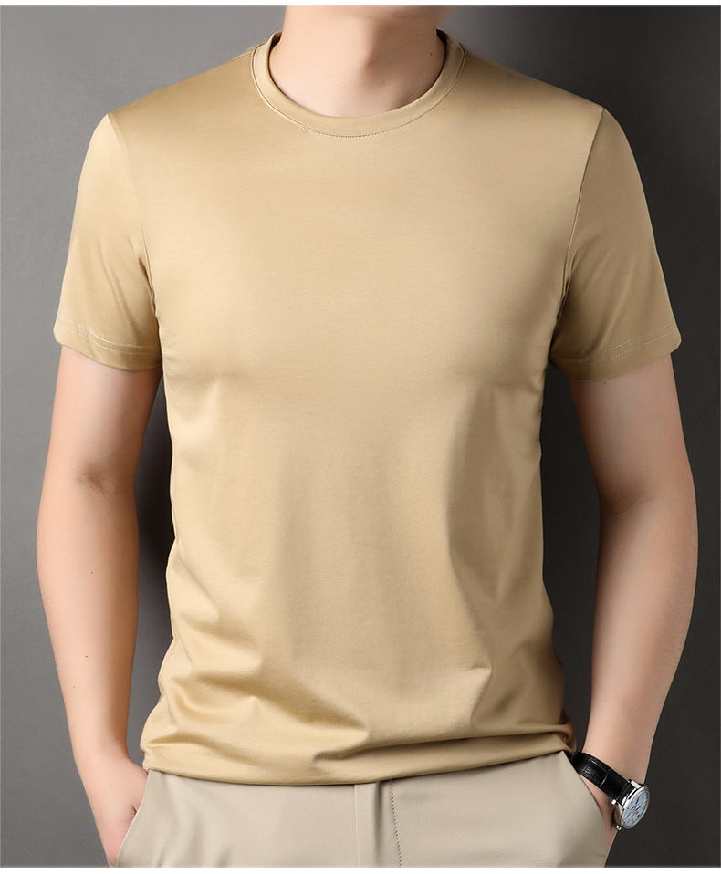 2024夏季新款桑蚕丝t恤男装短袖韩版休闲修身青年圆领纯色男士T恤