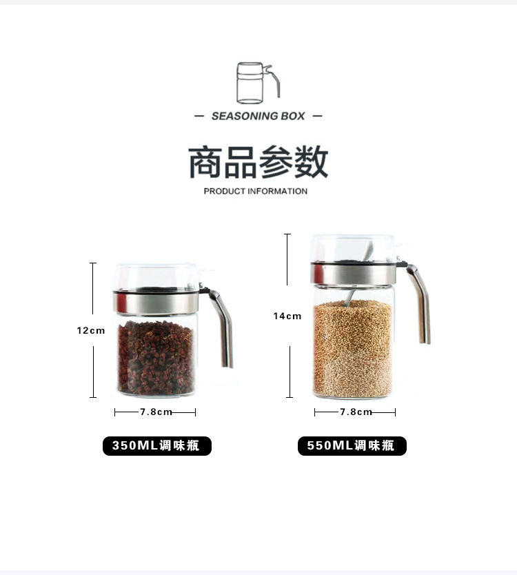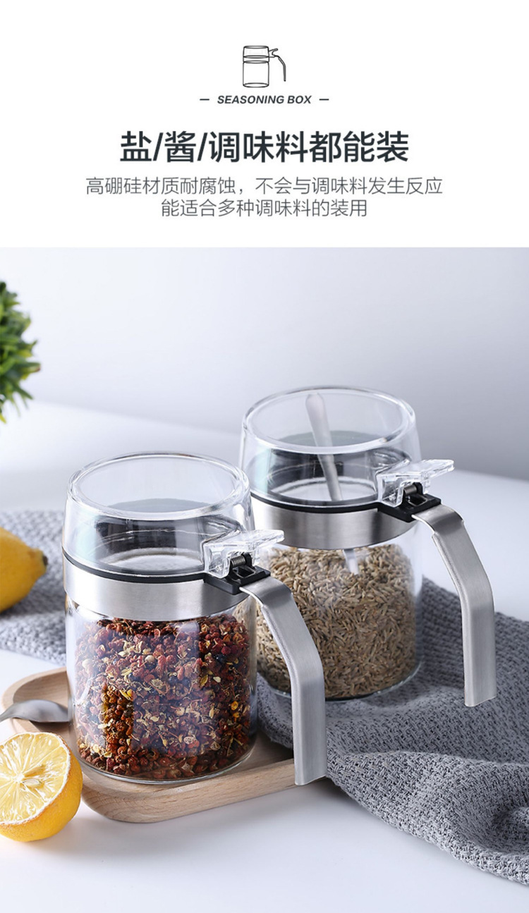 유리 조미료 병 가정용 주방 밀봉 된 방습 조미료 항아리 커버 핸들 MSG 조미료 상자가있는 숟가락 소금 항아리스토어 가기
