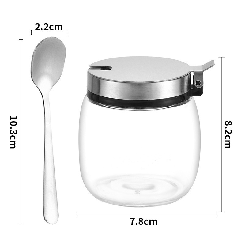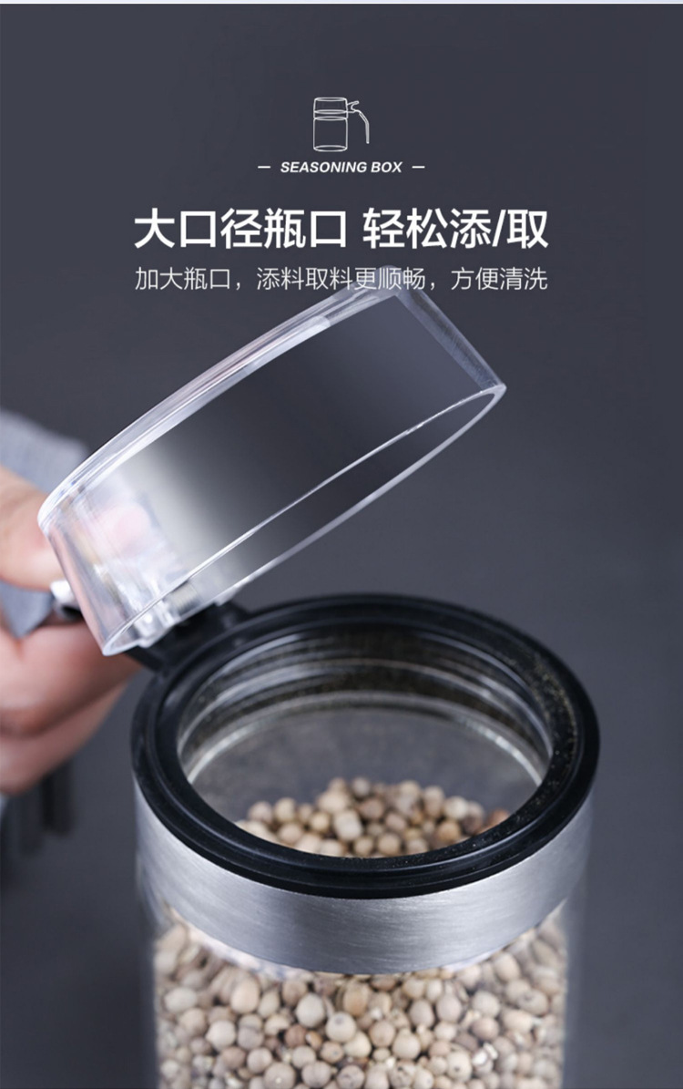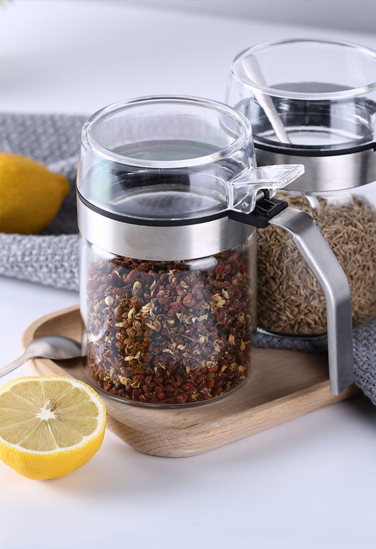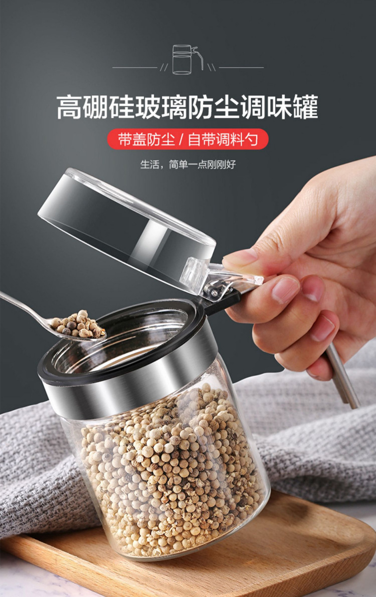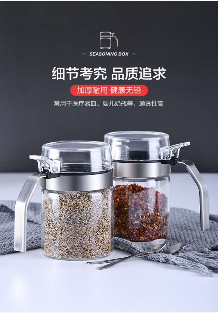 유리 조미료 병 가정용 주방 밀봉 된 방습 조미료 항아리 커버 핸들 MSG 조미료 상자가있는 숟가락 소금 항아리