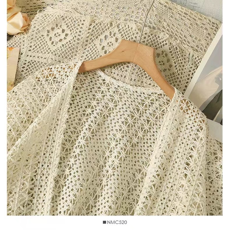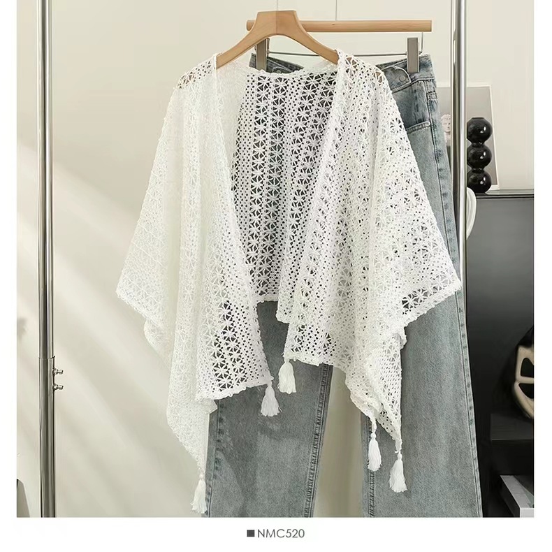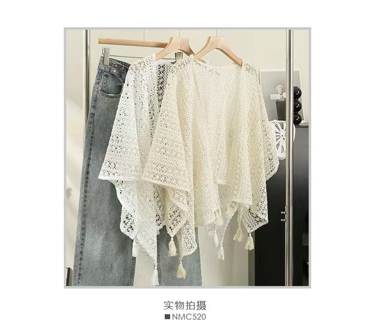 빈티지 민족 휴가 스타일 니트 술 카디건 여성용 얇은 봄과 가을 작은 목도리 스커트 레이스 블라우스스토어 가기