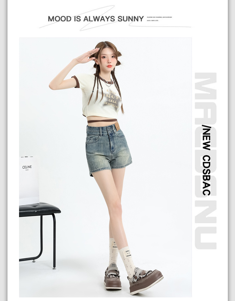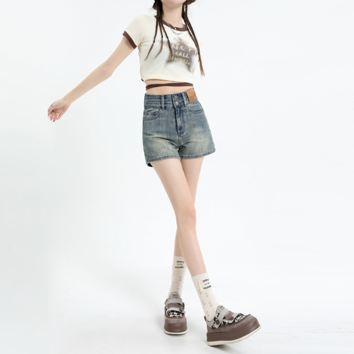 • 레트로 더블 버튼 데님 반바지