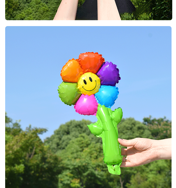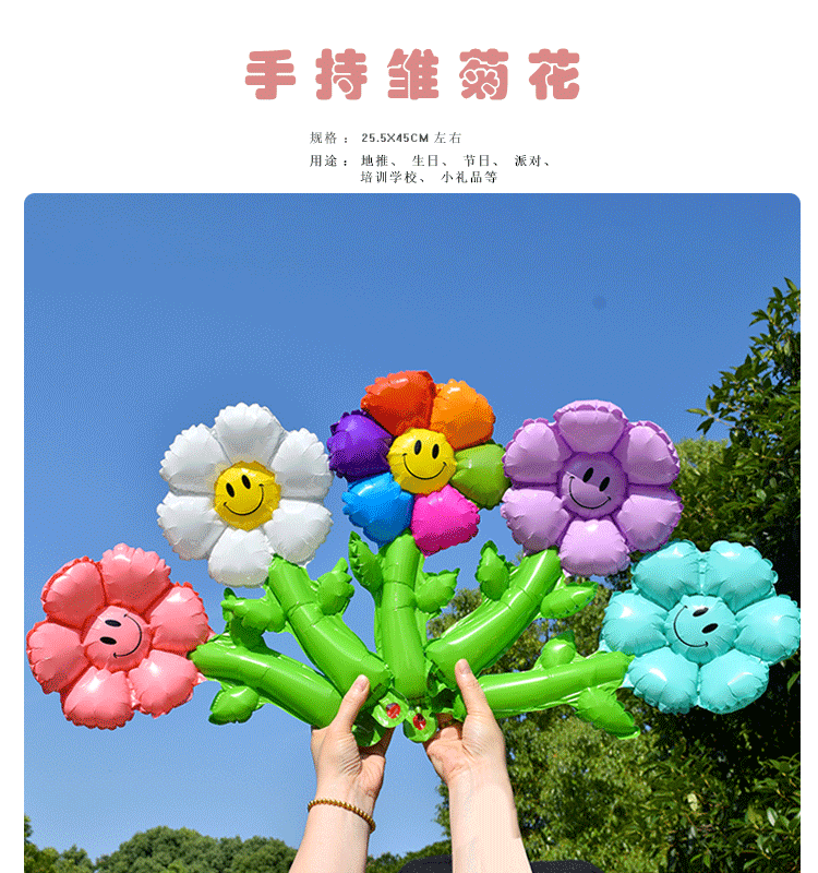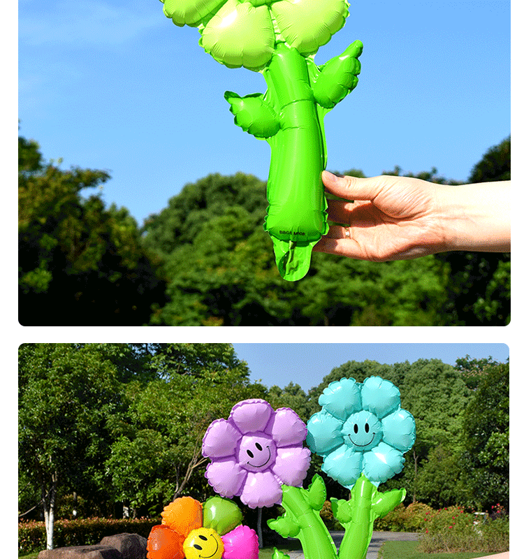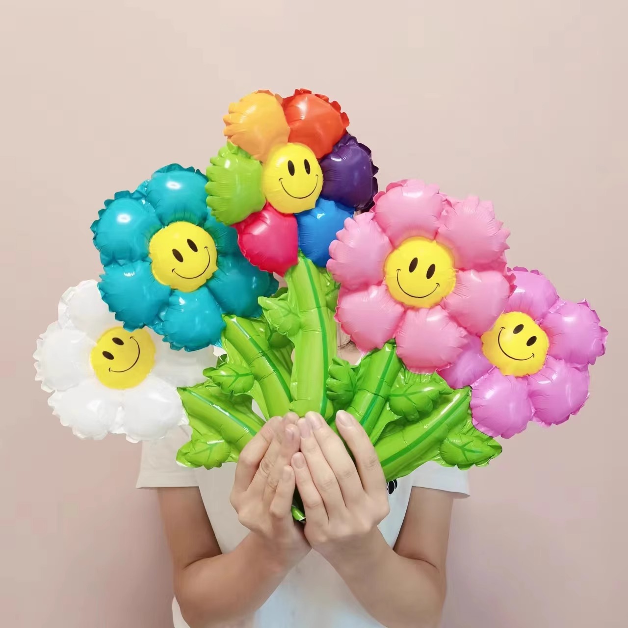 해바라기 풍선 휴대용 알루미늄 스마일리 유치원 생일 장면 레이아웃 아이 데이지 풍선 푸싱