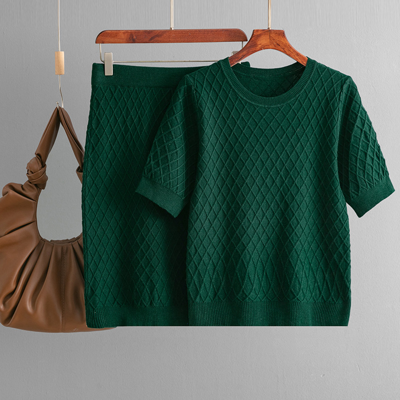 유럽과 미국의 대외 무역 여성의 여름 단색 원피스 2024 새로운 라운드 넥 탑 니트 2 피스 원피스스토어 가기