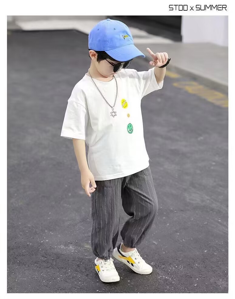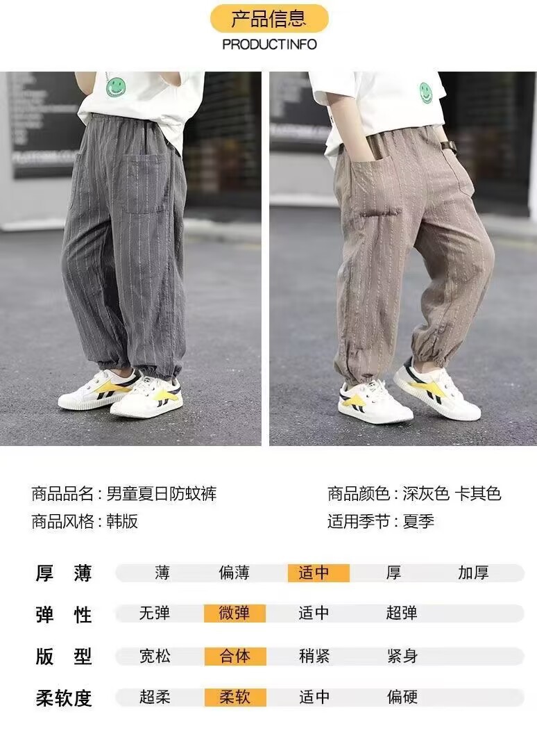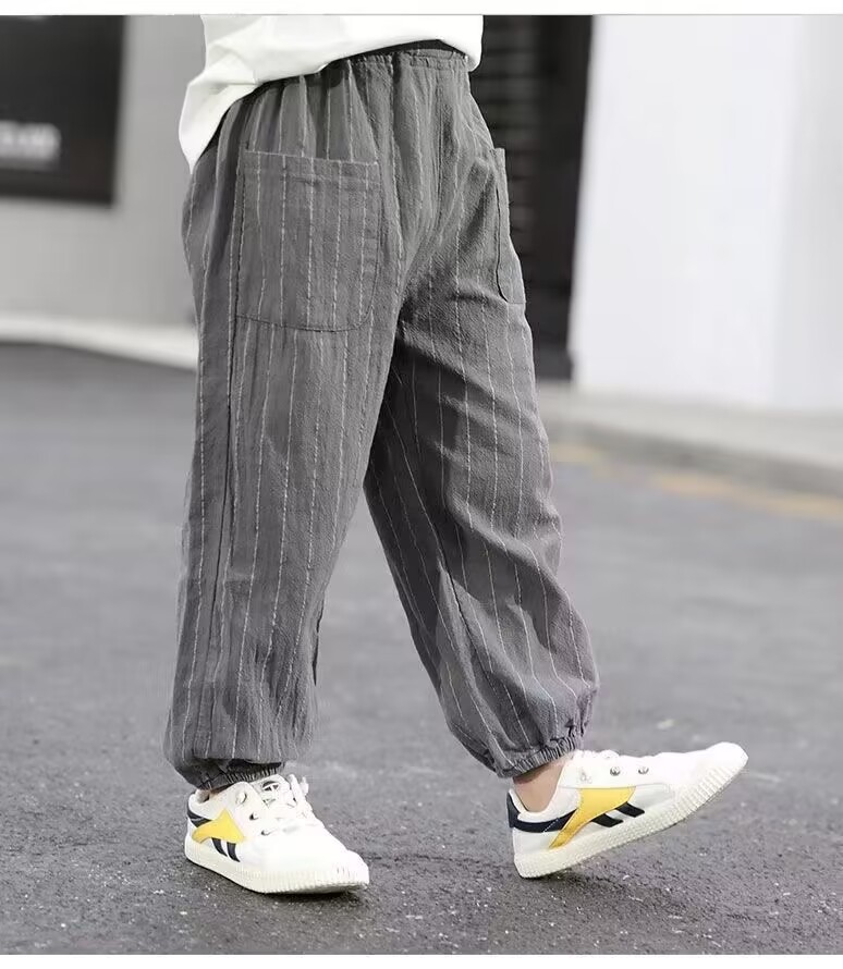 맞춤형 소년의 모기 방지 바지 여름 느슨한 줄무늬 어린이 면화 및 리넨 블루머스 작은 어린이 바지 도매 대외 무역스토어 가기