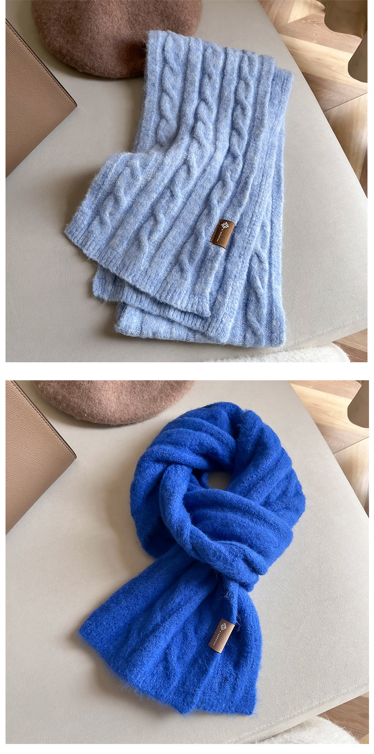 2024 년 솔리드 컬러 니트 울 스카프 여성 겨울 한국식 Ins 고급 화이트 두꺼운 따뜻한 울 스카프스토어 가기