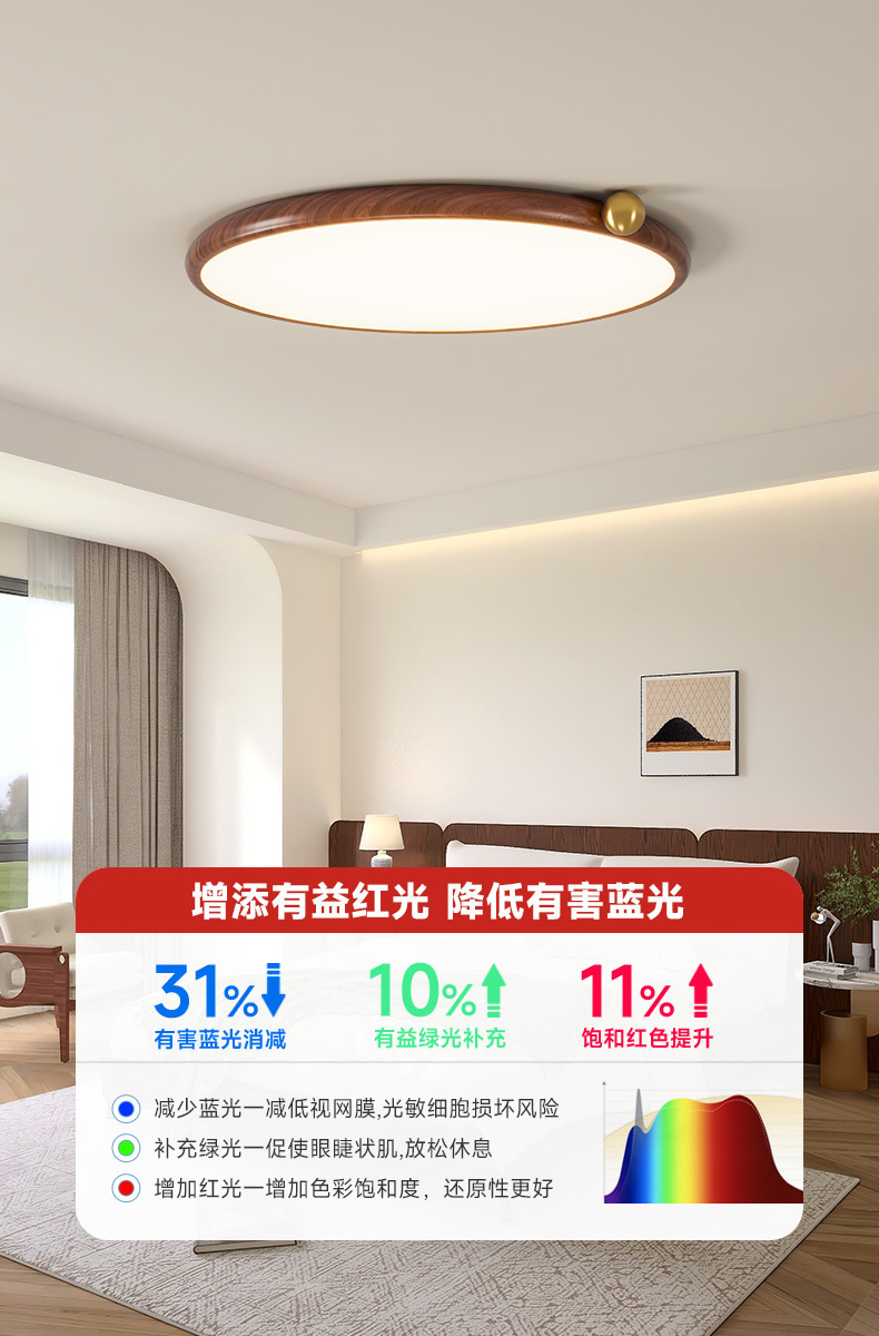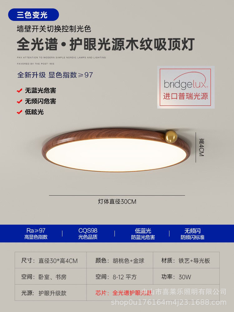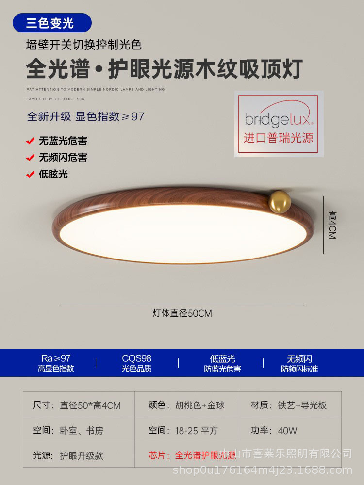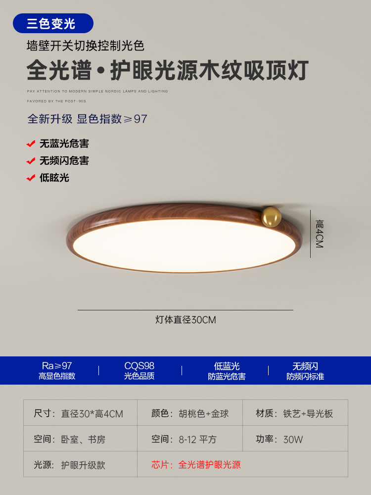 침실 용 전체 스펙트럼 일본 눈 보호 천장 램프 간단한 초박형 호두 패턴 룸 북유럽 연구 램프스토어 가기
