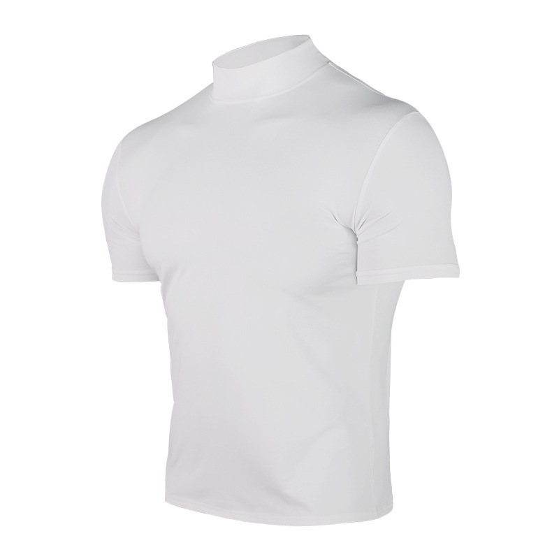국경 아마존 남성 의류 스팟 2025 여름 솔리드 컬러 반팔 패션 바닥 셔츠 남성 꽉 터틀넥 티셔츠