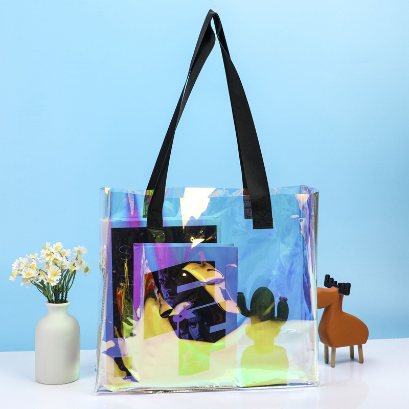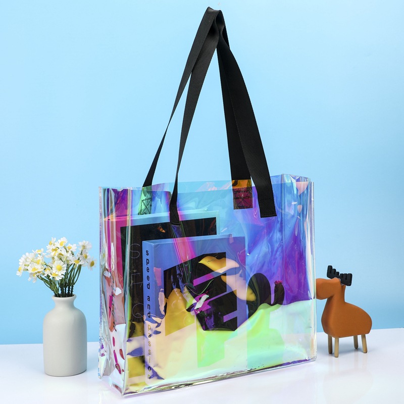 Pvc 레이저 토트 백 하이 엔드 웨딩 선물 선물 가방 핸드백 패션 대용량 젤리 백스토어 가기