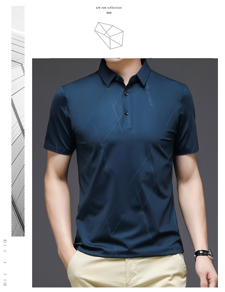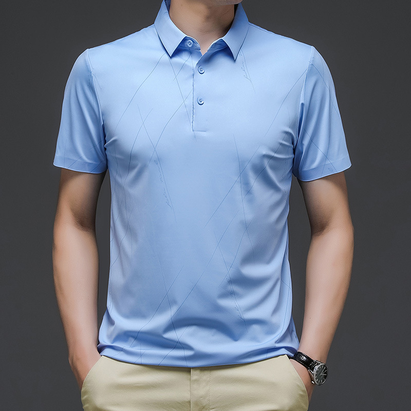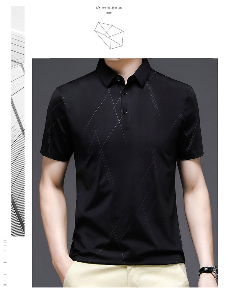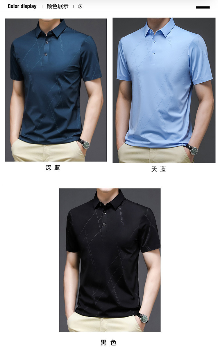 2024 여름 남자 짧은 소매 느슨한 둥근 목 단색 반소매 아이스 실크면 티셔츠 젊고 중년 재킷 머리카락