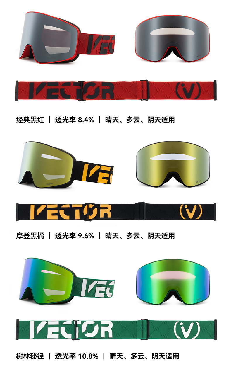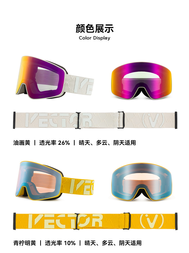 VECTOR 플레이 연장 스키 안경 자기 유치 눈 고글 여성 안개 방지 카드 근접 시력 안경 남성 헬멧 스키 고글