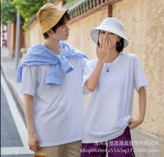 퓨어 코튼 반팔 티셔츠 남성용 여름 느슨한 플러스 사이즈 솔리드 컬러 반소매 2024 뉴 스타일 퓨어 코튼 남성과 여성 티셔츠 트렌디스토어 가기