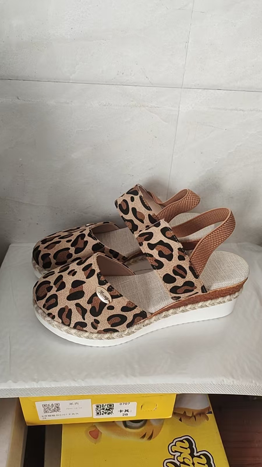크로스보더 temu 대형 2025 백 샌들 웨지 힐 경량 대마 로프 토캡 탄성 밴드 여성 신발 두꺼운 밑창 여성 신발