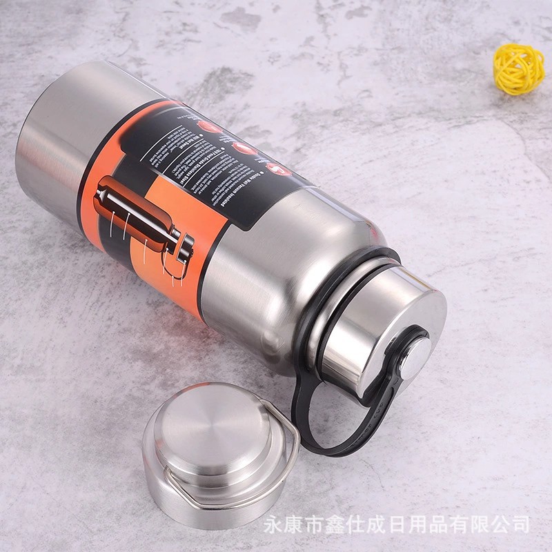 야외 편리한 보온병 더블 레이어 스테인레스 스틸 대용량 여행 물 컵 차 배수 물 병 등산 물병