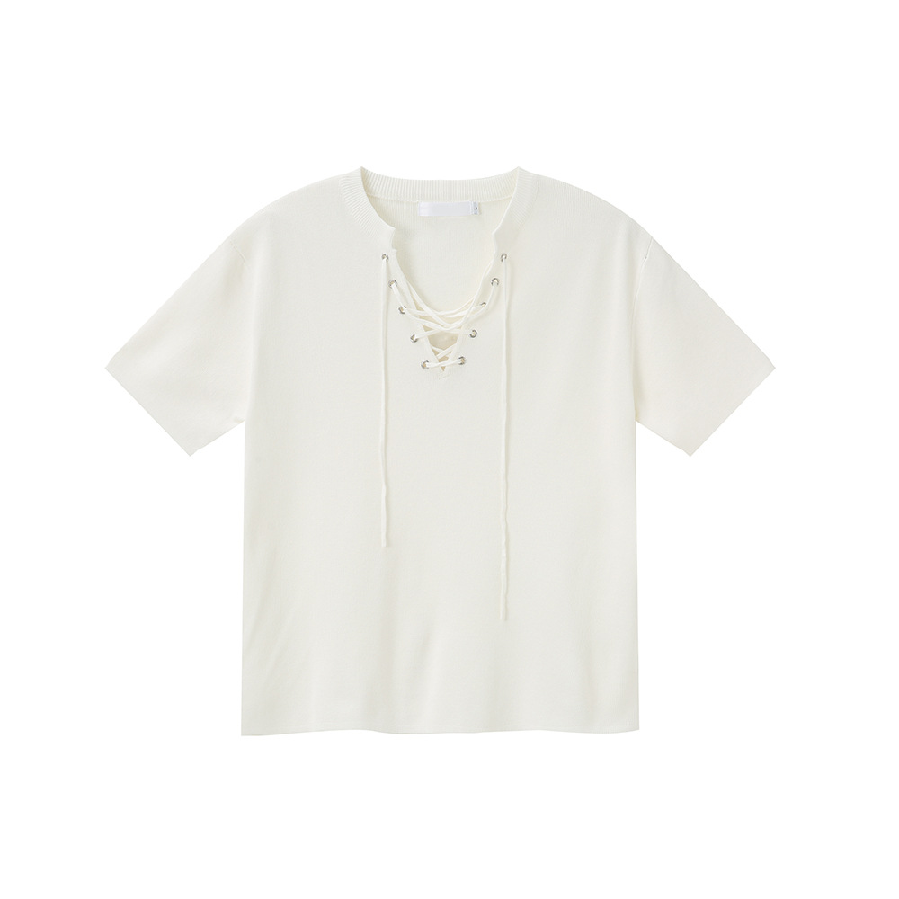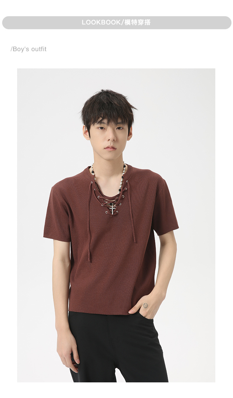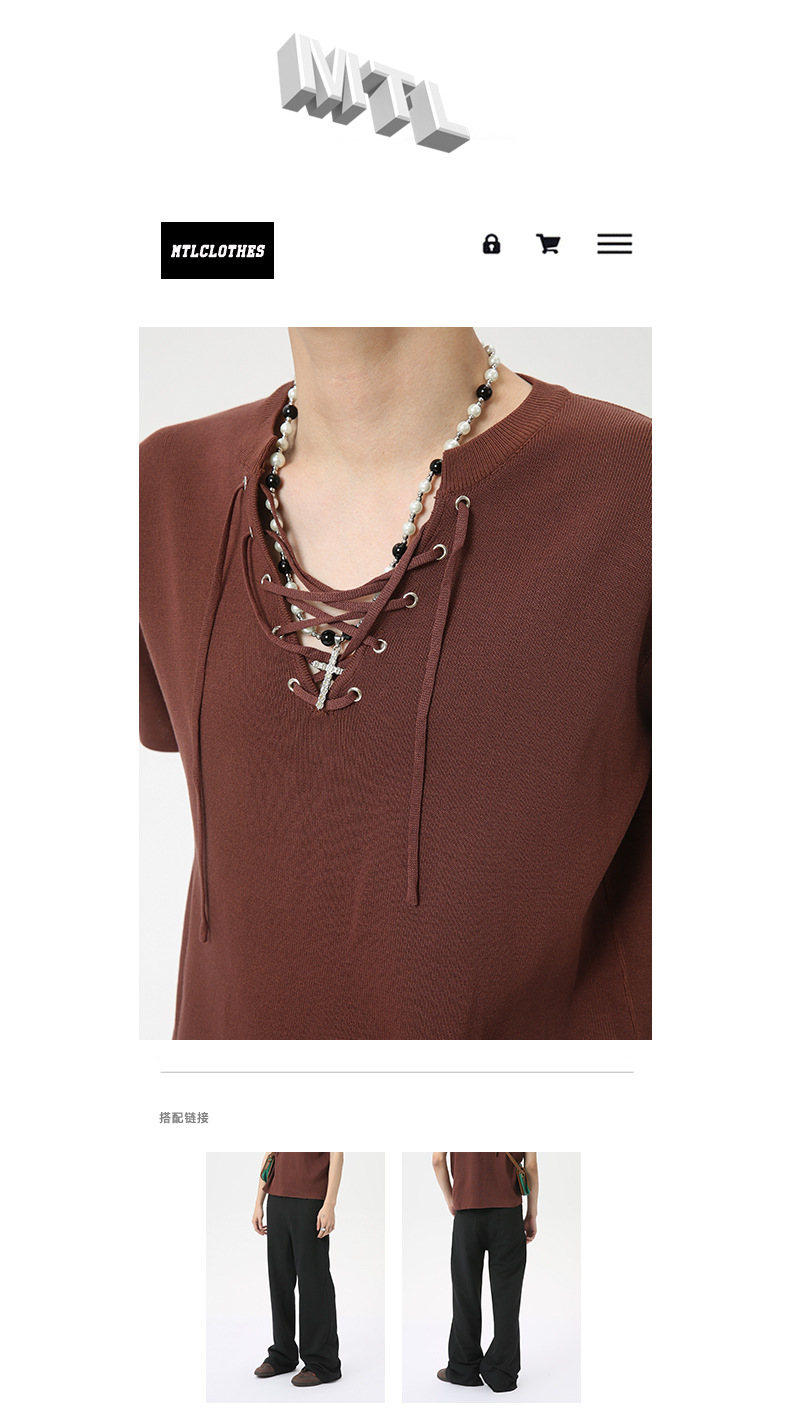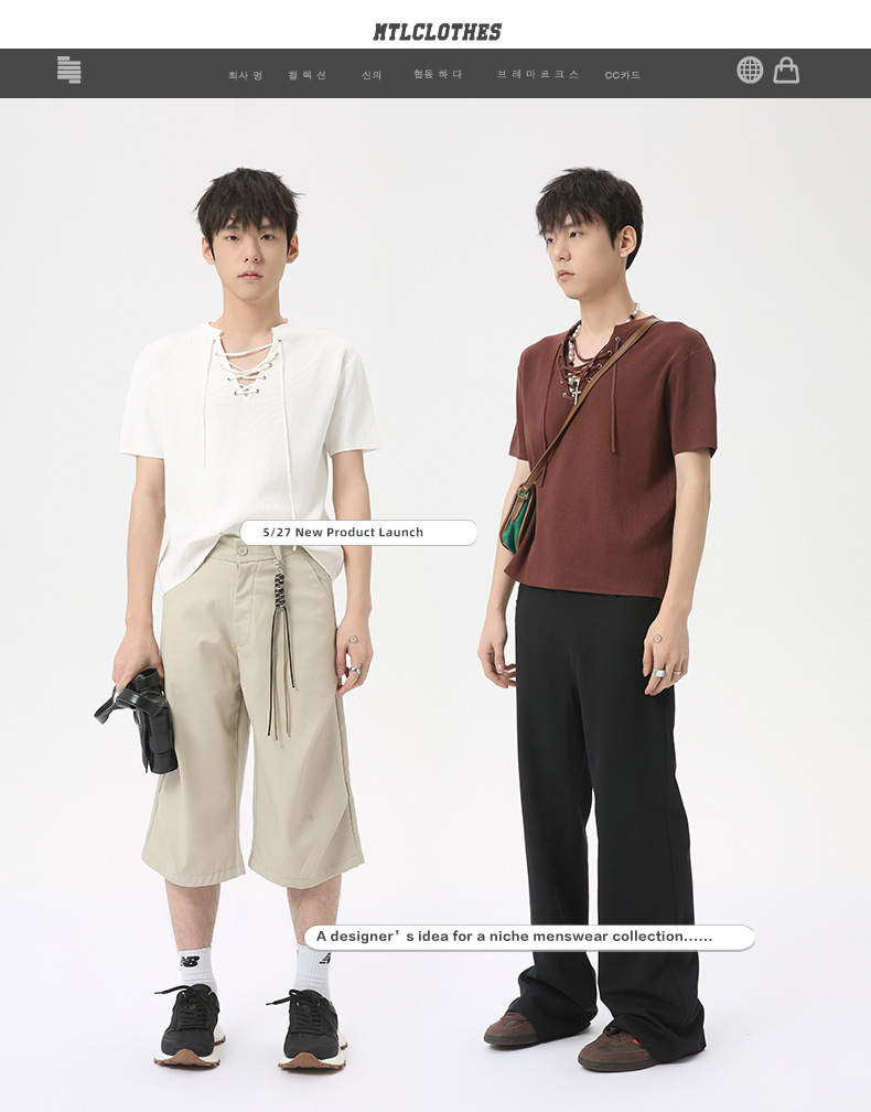 MTLCLOTHES 남성용 | 2024 년 여름 새로운 틈새 V 넥 드로우 스트링 디자인 순수 컬러 니트 재킷스토어 가기