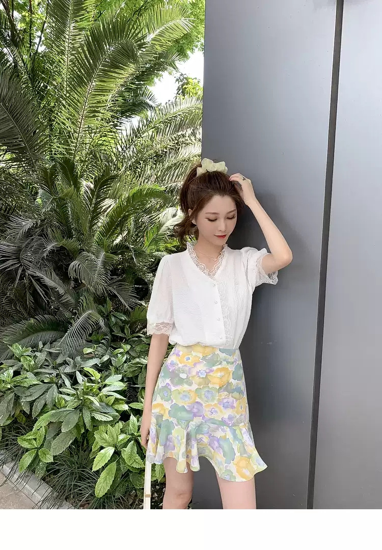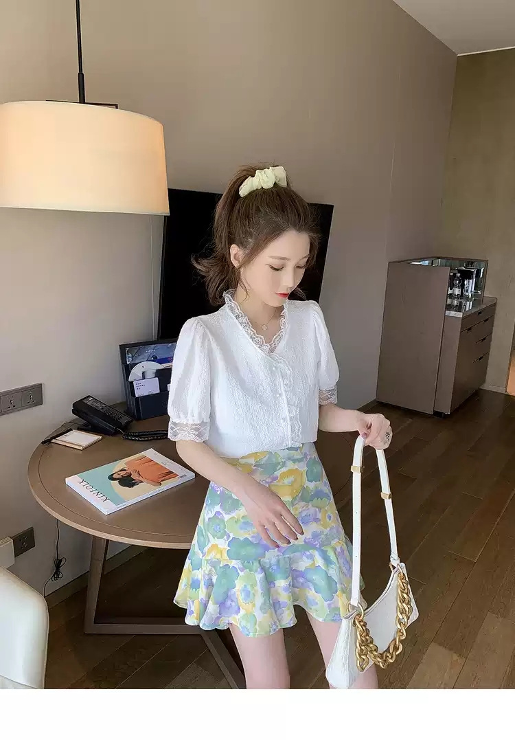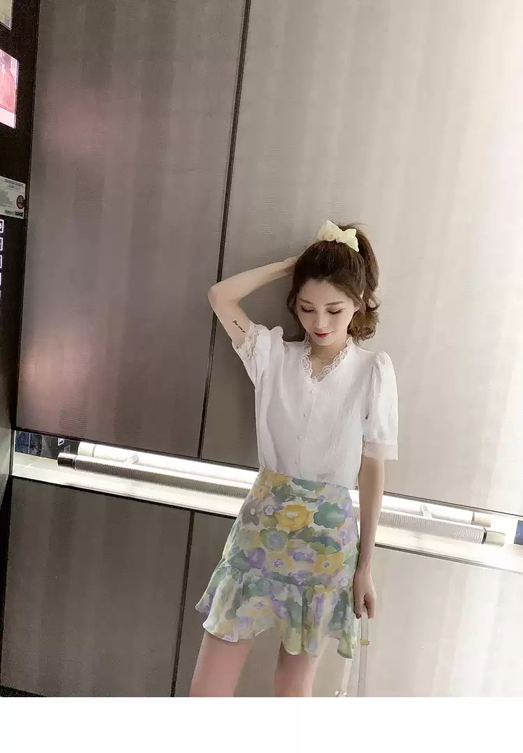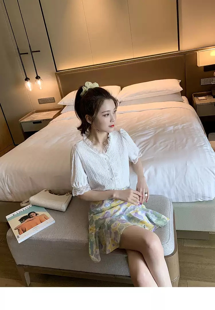 서양 스타일 달콤한 패션 쉬폰 셔츠 탑 새로운 화이트 셔츠 여성의 프랑스 스타일 디자인 센스 틈새스토어 가기