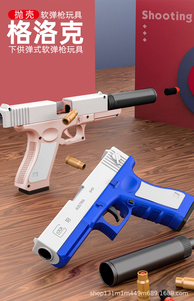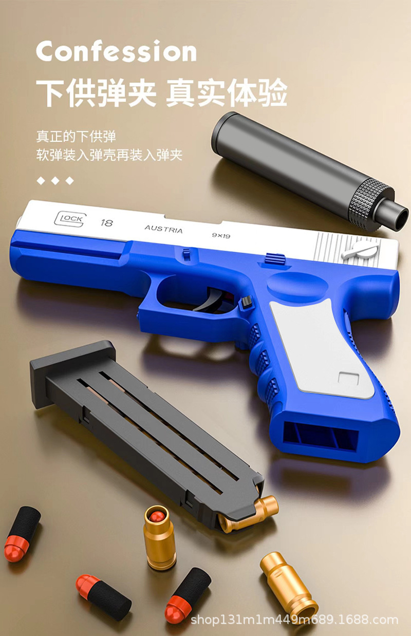 Glock 권총 장난감 총 부드러운 총알 m1911 권총 자동 로딩 쉘 소년은 닭고기 선물 도매를 먹습니다.