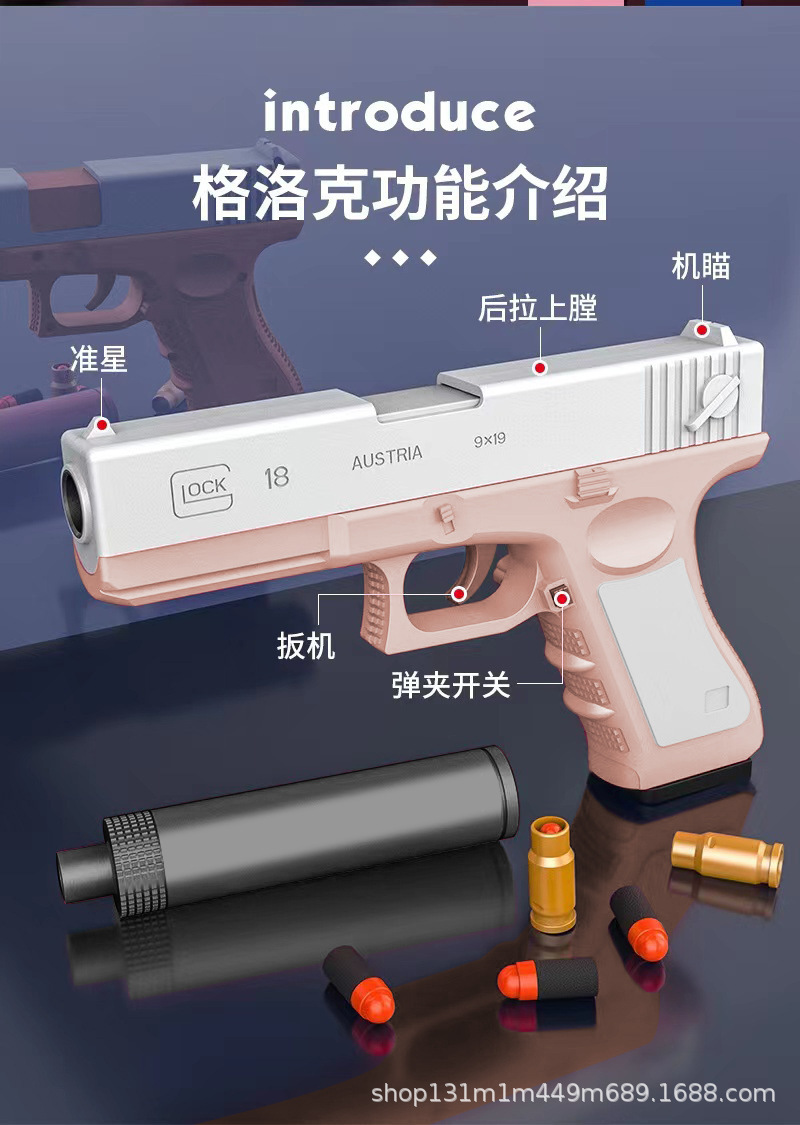 Glock 권총 장난감 총 부드러운 총알 m1911 권총 자동 로딩 쉘 소년은 닭고기 선물 도매를 먹습니다.스토어 가기