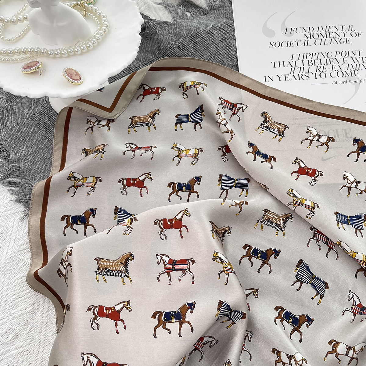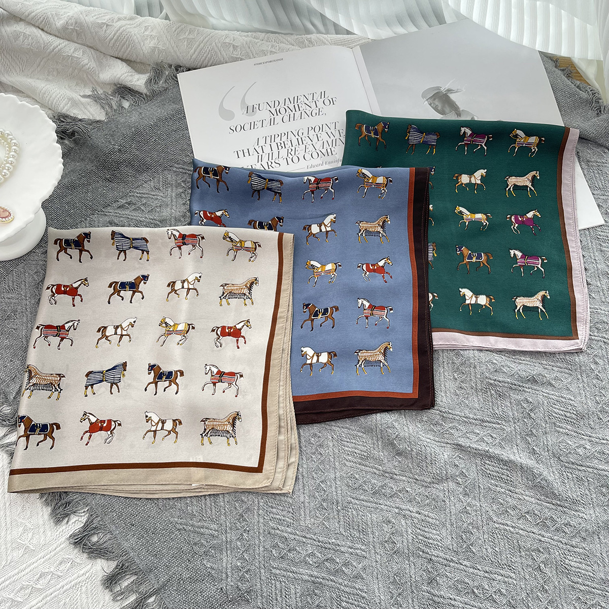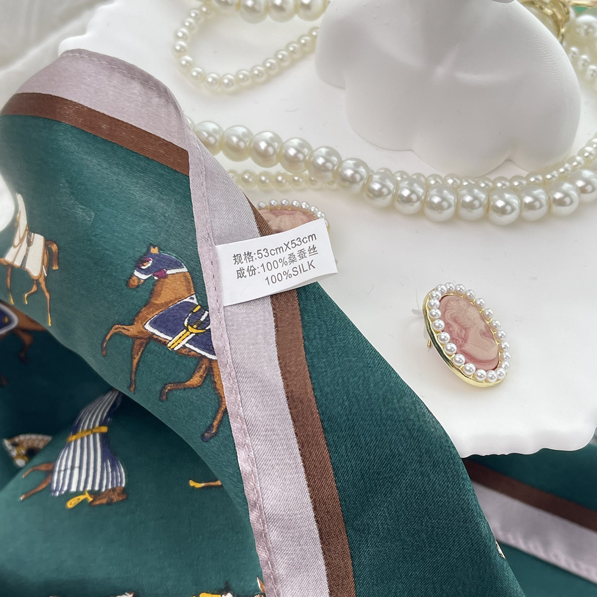 그린 포니 여름 100% 실크 스카프 여성 여름 높은 감각 53 작은 광장 스카프 선 스크린 스카프 헤드 스카프 도매스토어 가기