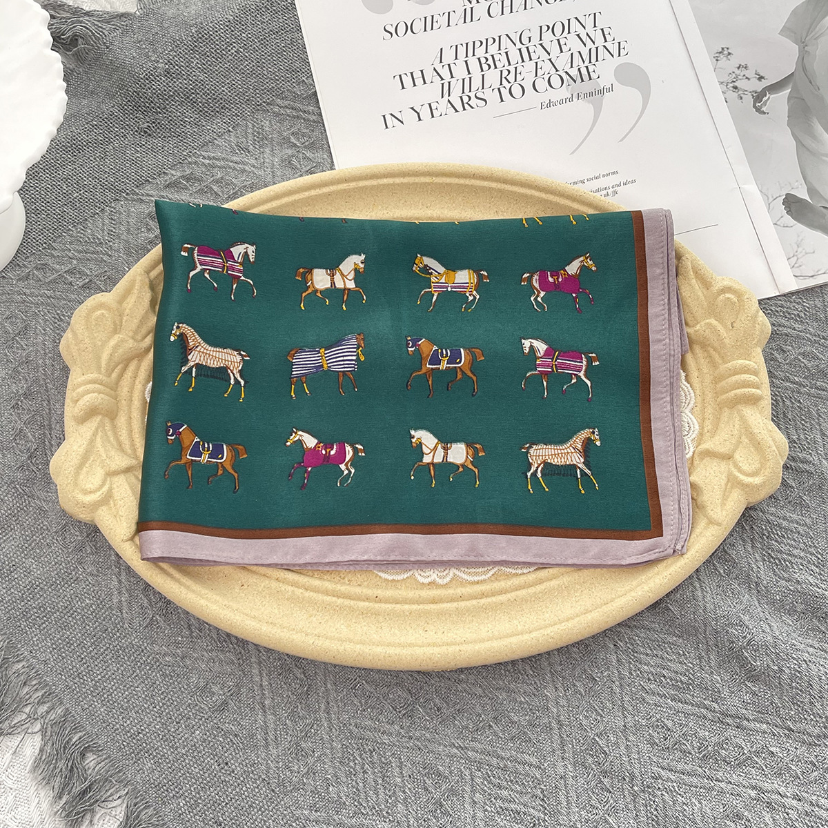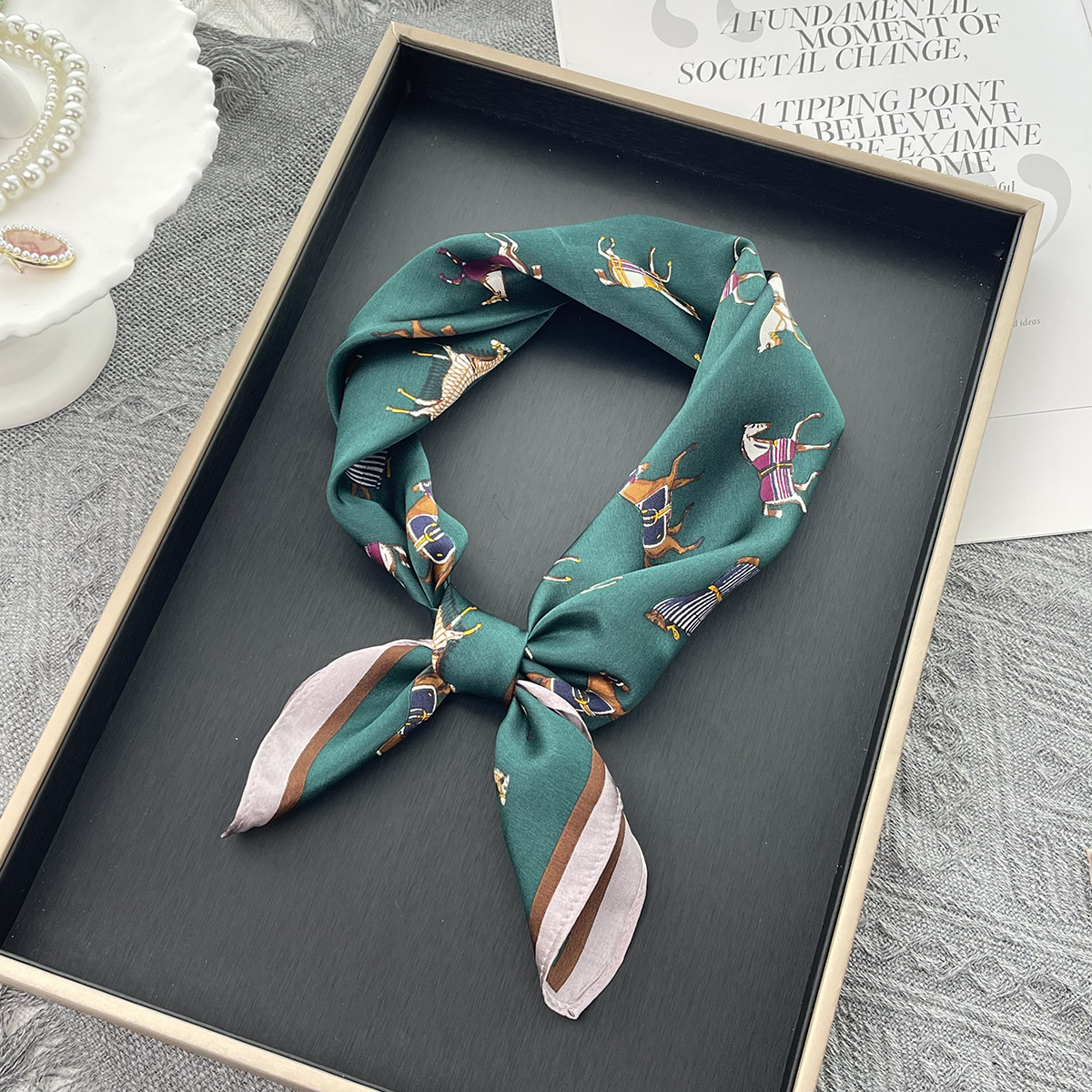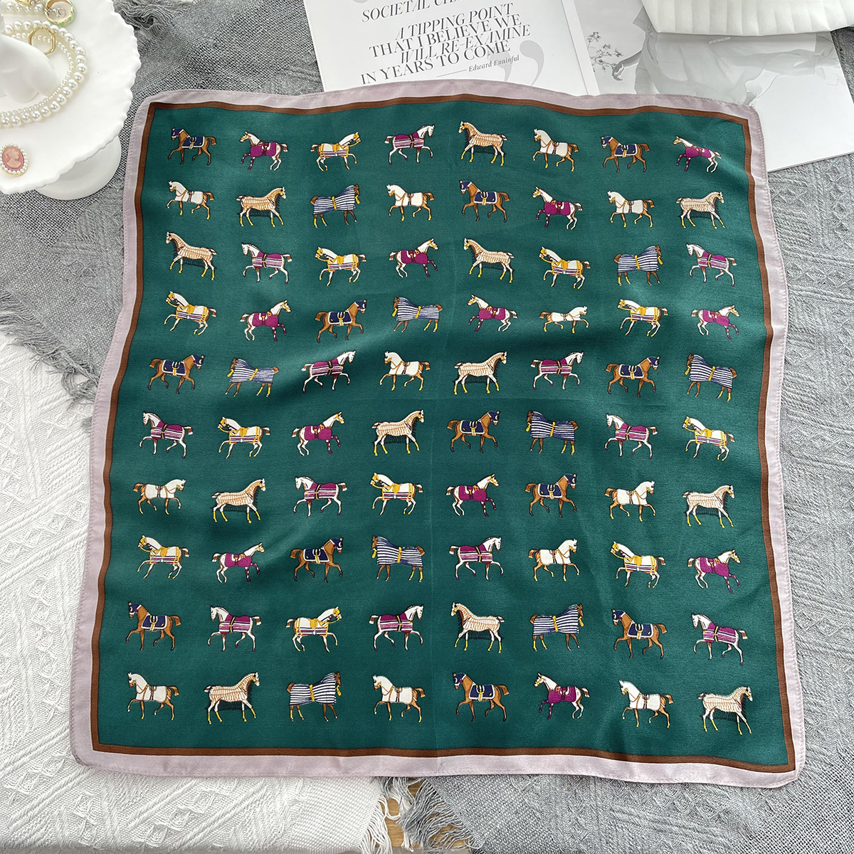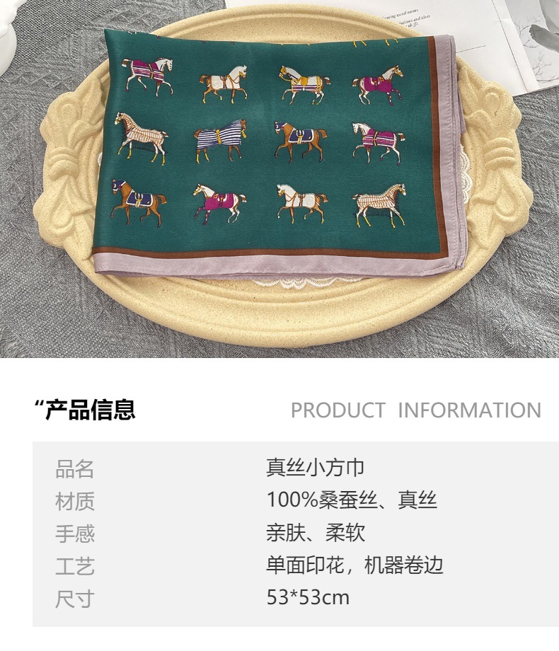 그린 포니 여름 100% 실크 스카프 여성 여름 높은 감각 53 작은 광장 스카프 선 스크린 스카프 헤드 스카프 도매