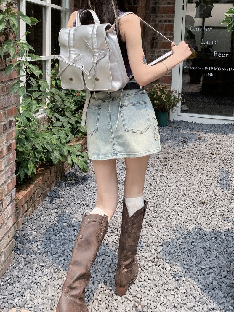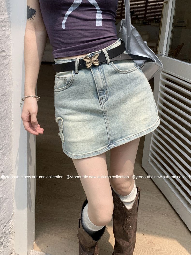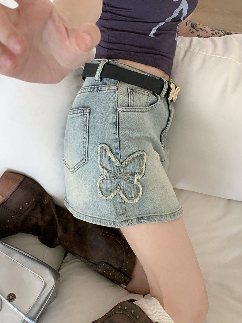디자인 센스 나비 자수 데님 스커트 여성 여름 뜨거운 소녀 스트레칭 엉덩이 스커트 안티 러닝 하이 허리 스커트스토어 가기