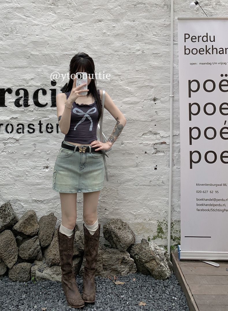 디자인 센스 나비 자수 데님 스커트 여성 여름 뜨거운 소녀 스트레칭 엉덩이 스커트 안티 러닝 하이 허리 스커트
