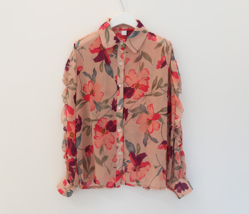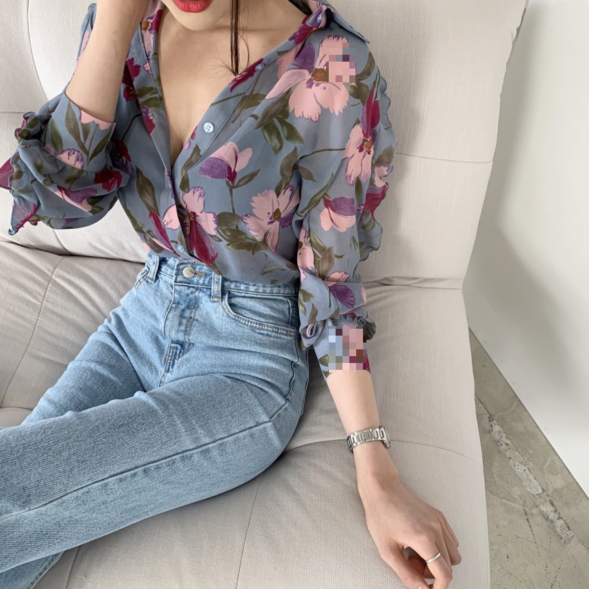 홍콩 맛 꽃 쉬폰 셔츠 여성 시즌 새로운 우아한 세련된 셔츠 하트 피팅 디자인 센스 니치 탑스토어 가기