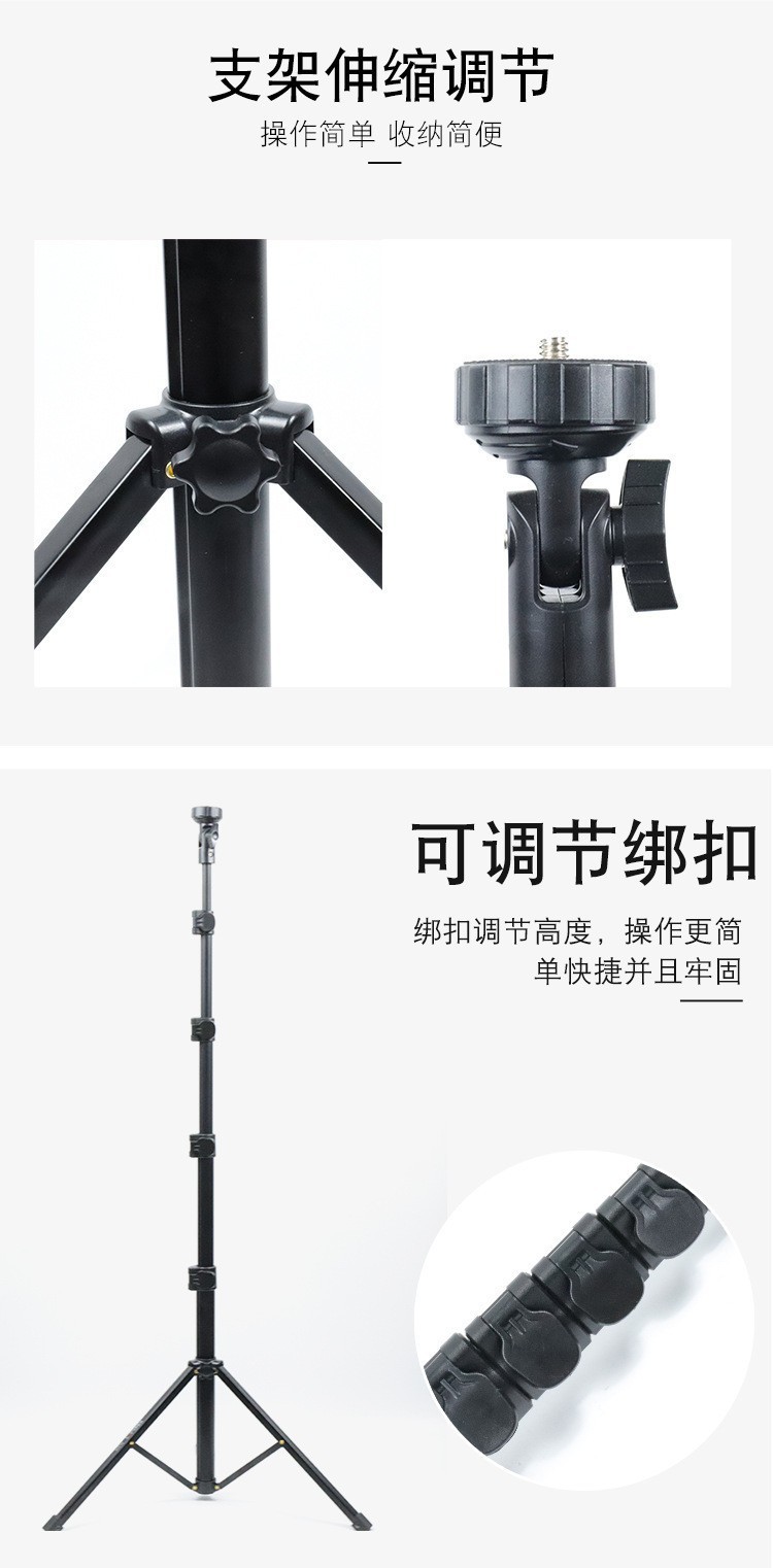 • 1.7m 플레이트 버클 브래킷 + 휴대폰 클립 + 금속 팬/틸트 + 블루투스 셀카
