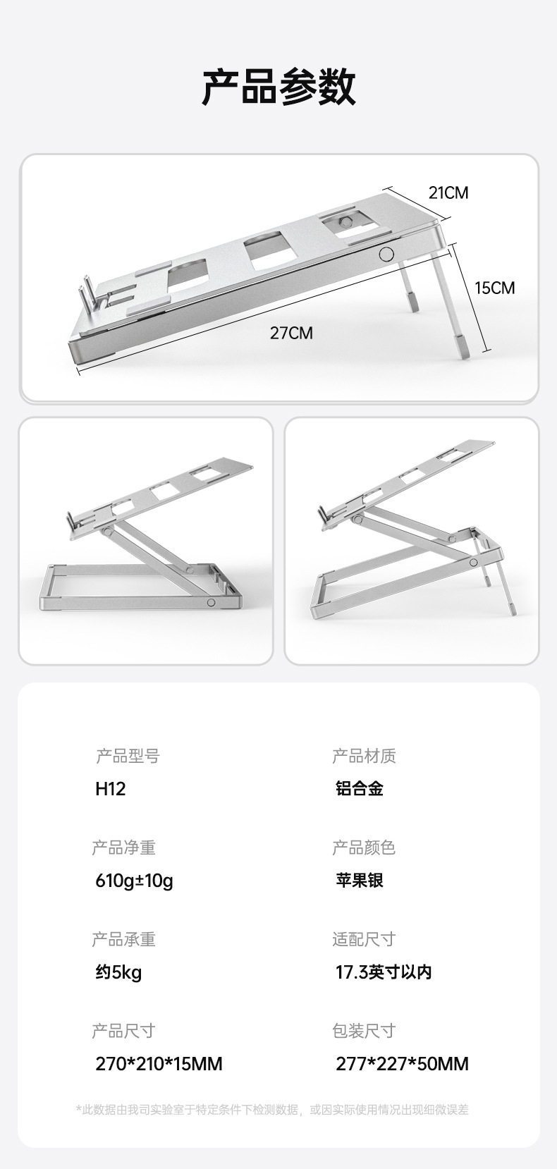 H12 태블릿 컴퓨터 브래킷 다기능 4 축 접이식 높이 조정 알루미늄 합금 노트북 브래킷