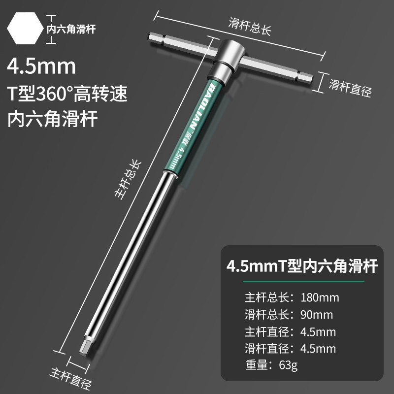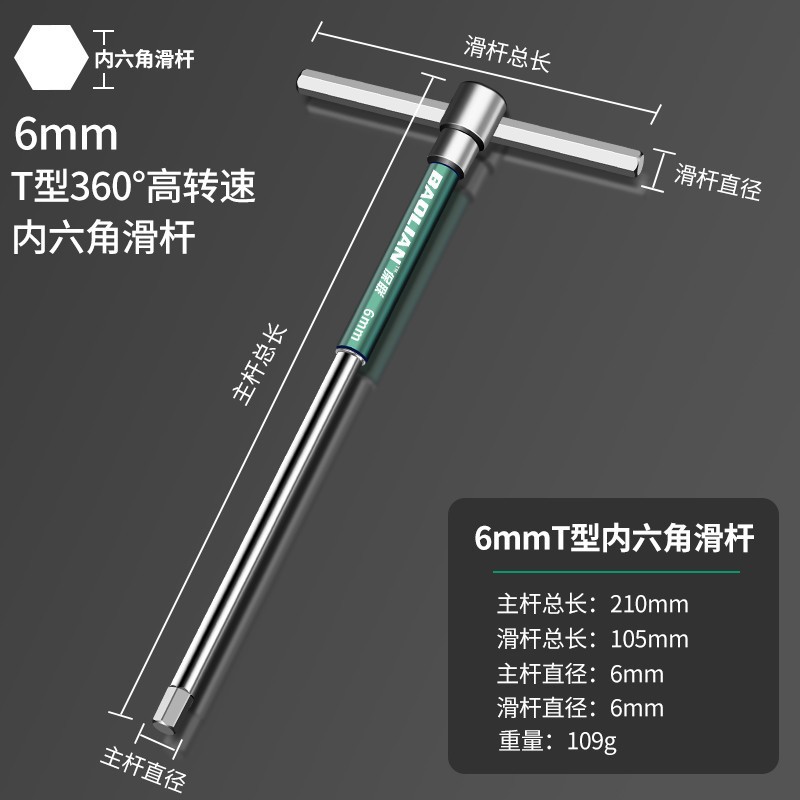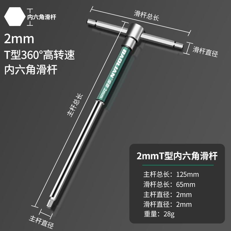 T 형 고속 회전 육각형 소켓 슬라이더 렌치 공구 연장 육각형 소켓 6 평방 2mm 산업 등급 자동차 수리