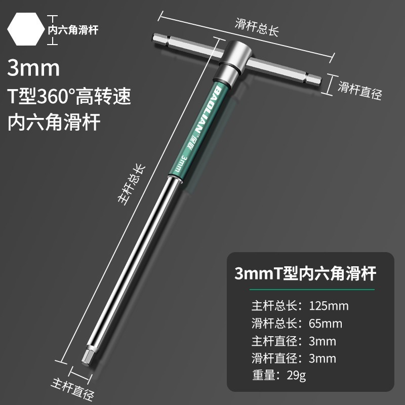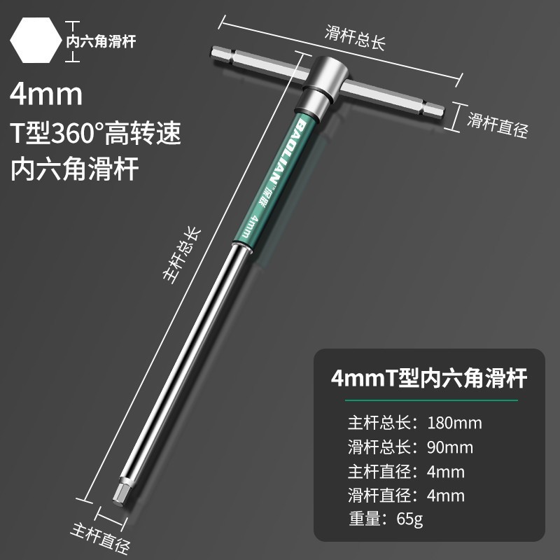 T 형 고속 회전 육각형 소켓 슬라이더 렌치 공구 연장 육각형 소켓 6 평방 2mm 산업 등급 자동차 수리스토어 가기