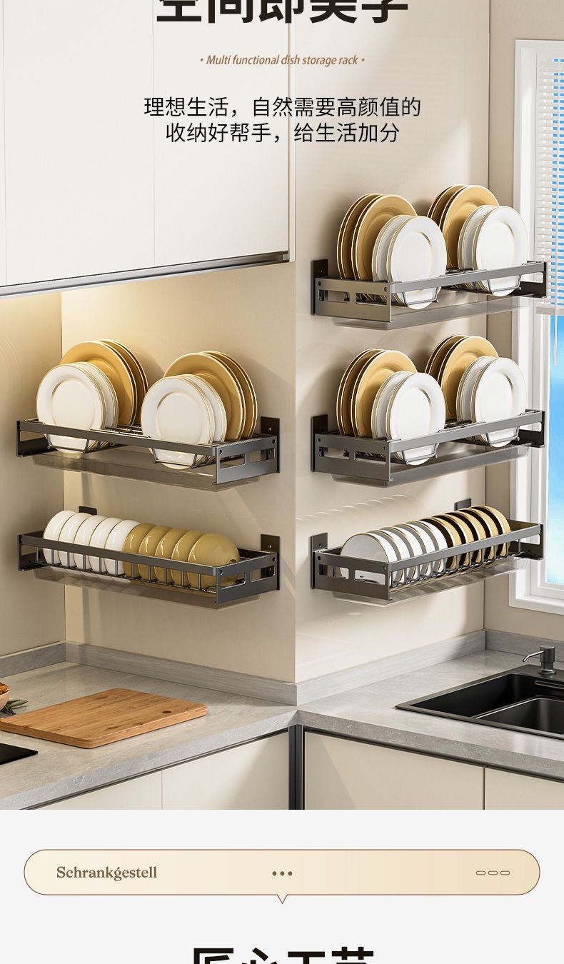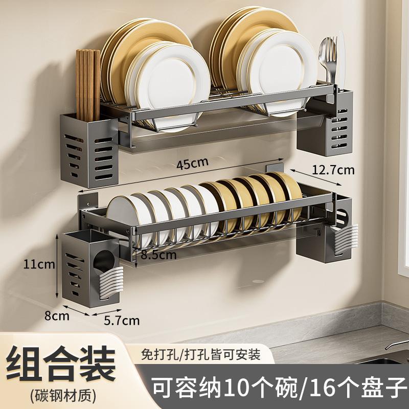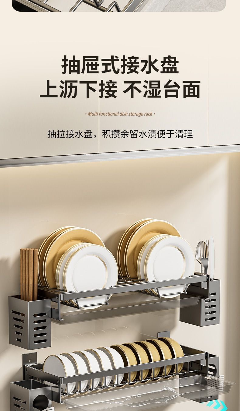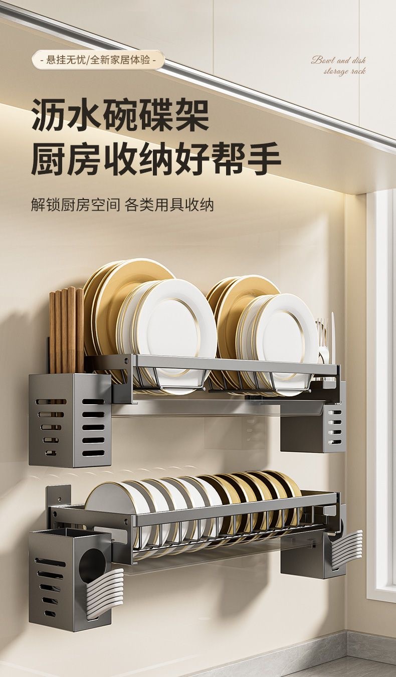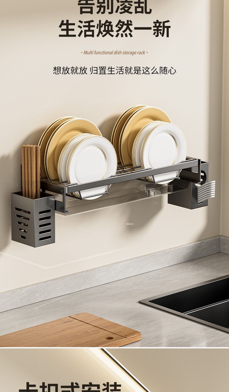 무타공 주방 접시걸이 스테인리스 접시걸이 배수대 가정용 벽걸이 수납선반 다기능 정리대