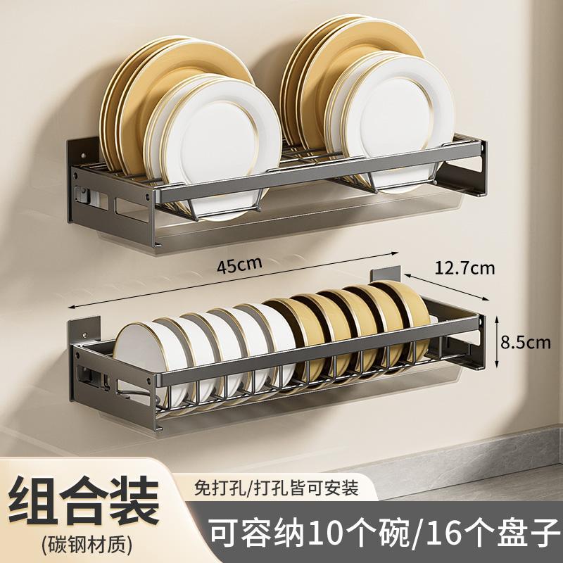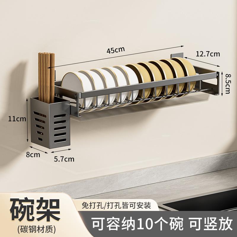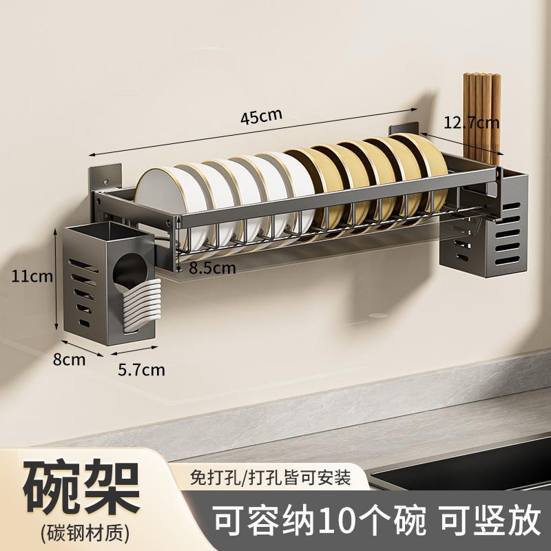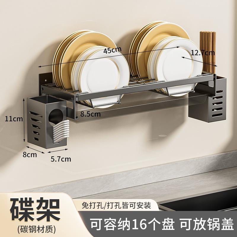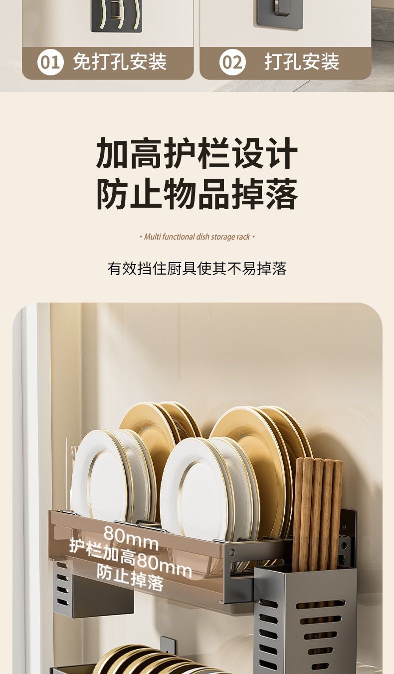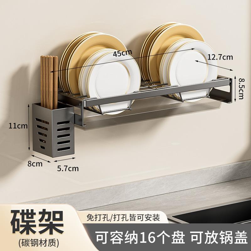 무타공 주방 접시걸이 스테인리스 접시걸이 배수대 가정용 벽걸이 수납선반 다기능 정리대
