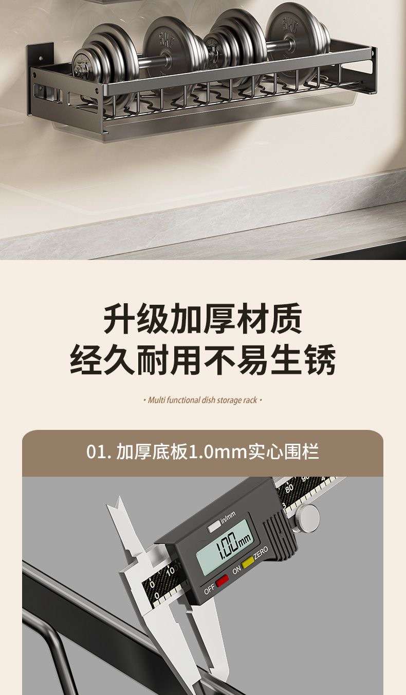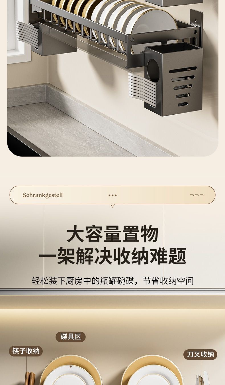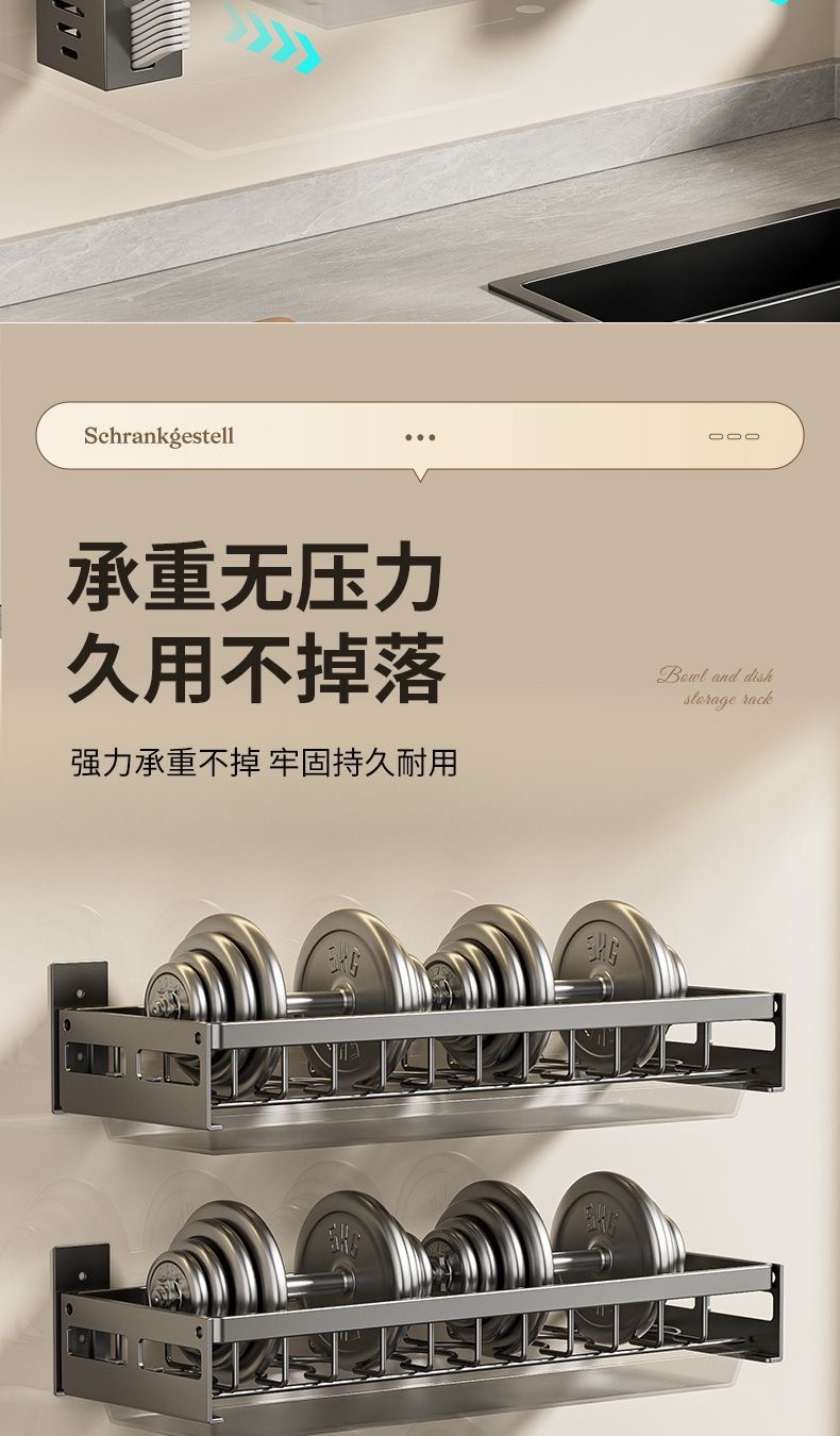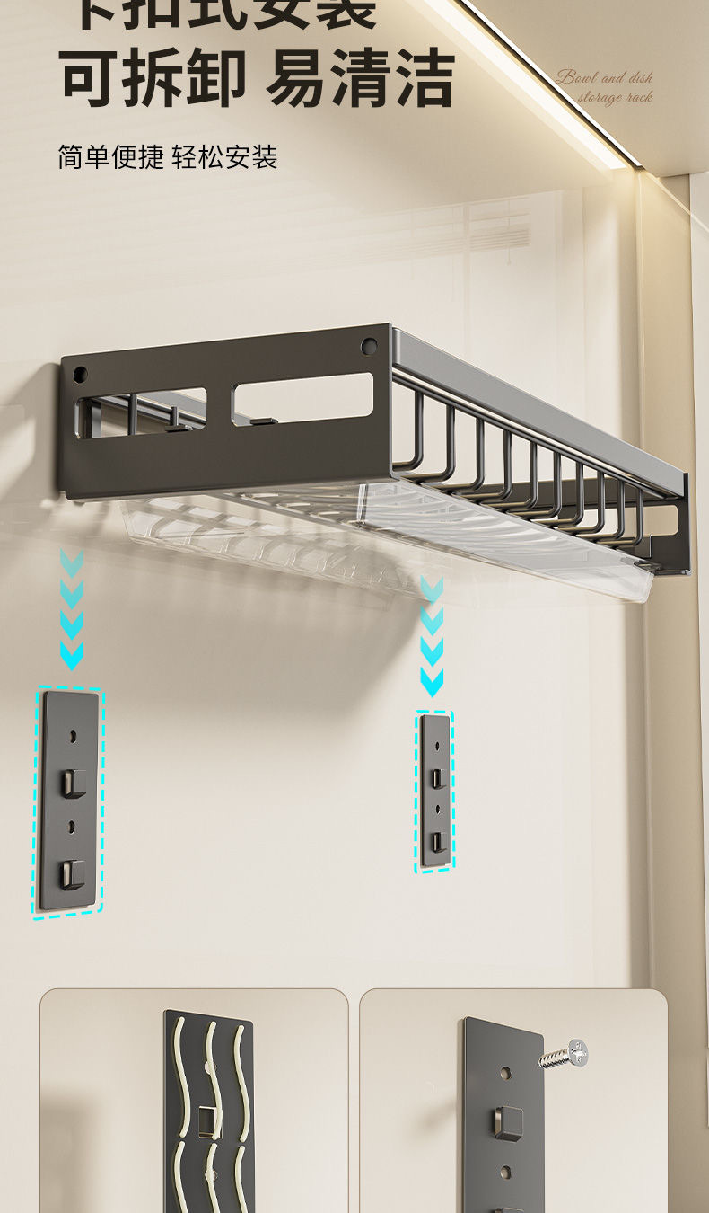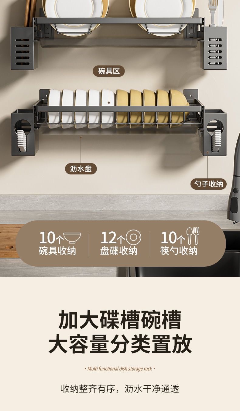 무타공 주방 접시걸이 스테인리스 접시걸이 배수대 가정용 벽걸이 수납선반 다기능 정리대