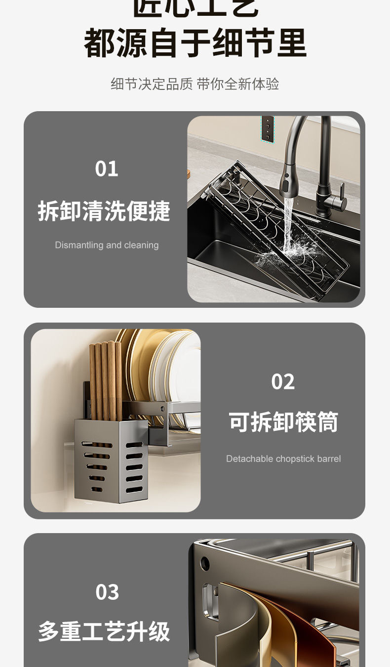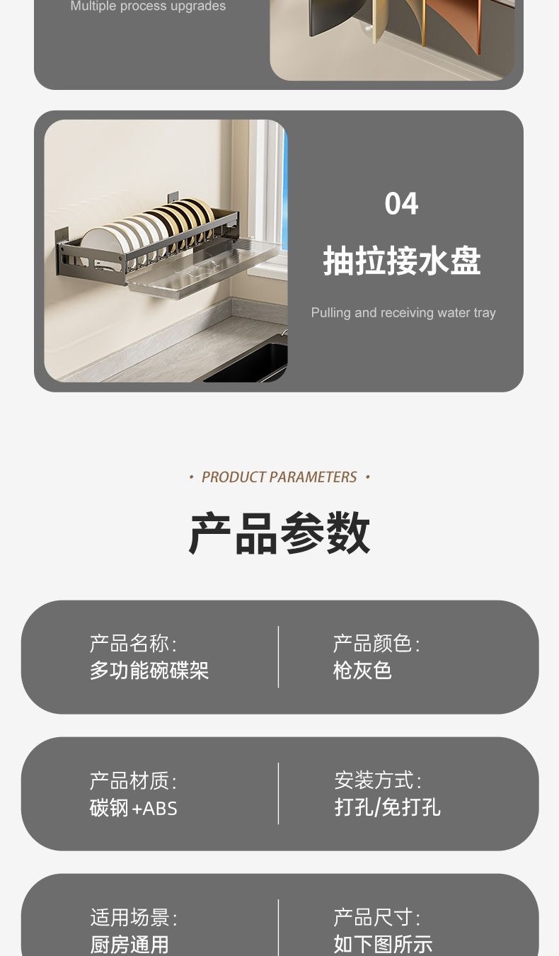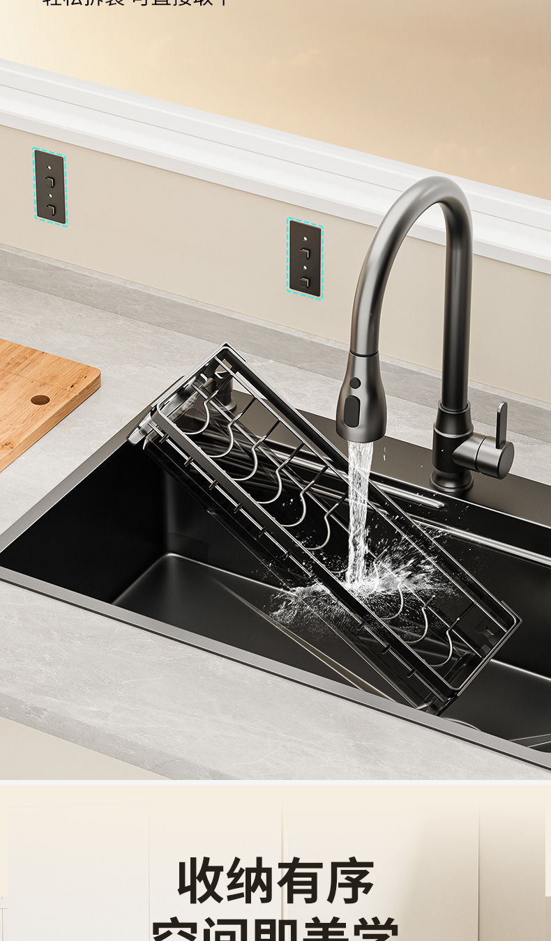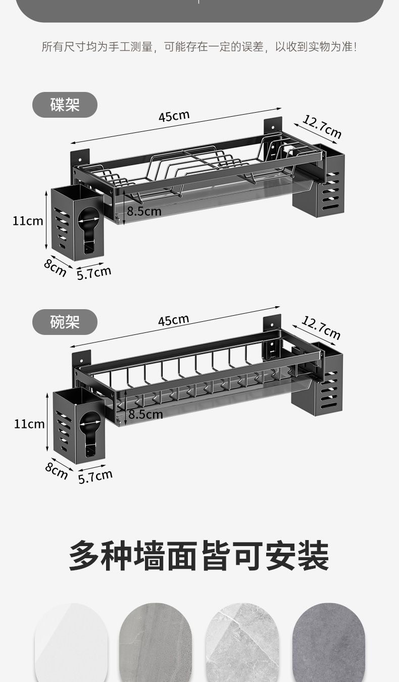 무타공 주방 접시걸이 스테인리스 접시걸이 배수대 가정용 벽걸이 수납선반 다기능 정리대