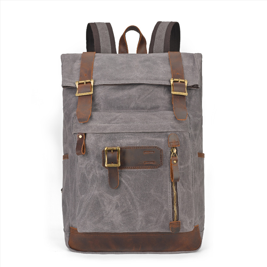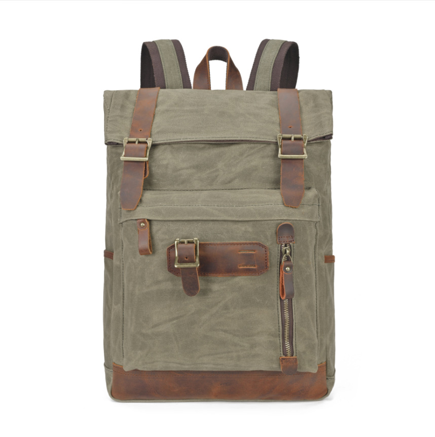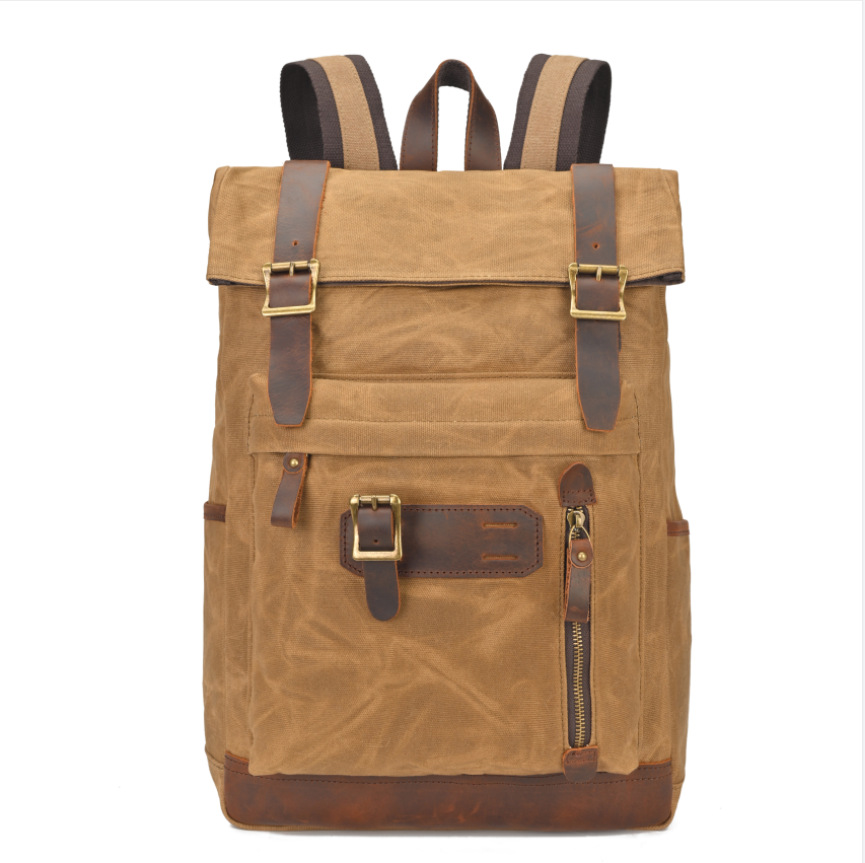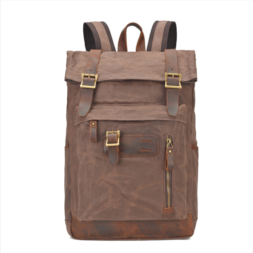 유럽과 미국의 빈티지 암호화 된 오일 왁스 캔버스 배낭 남성 여행 방수 등산 캐주얼 대용량 배낭