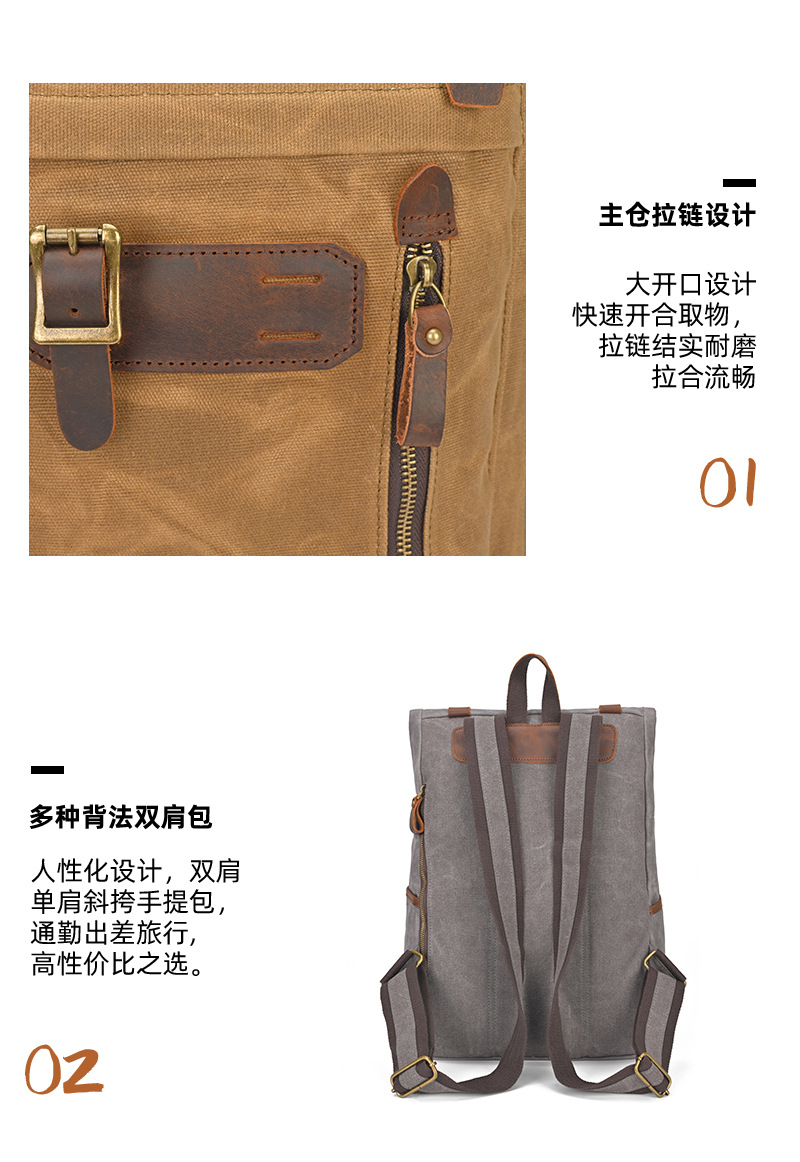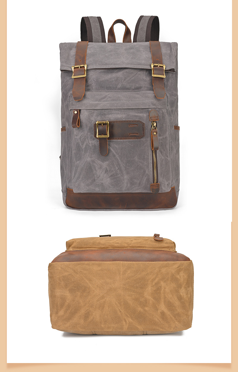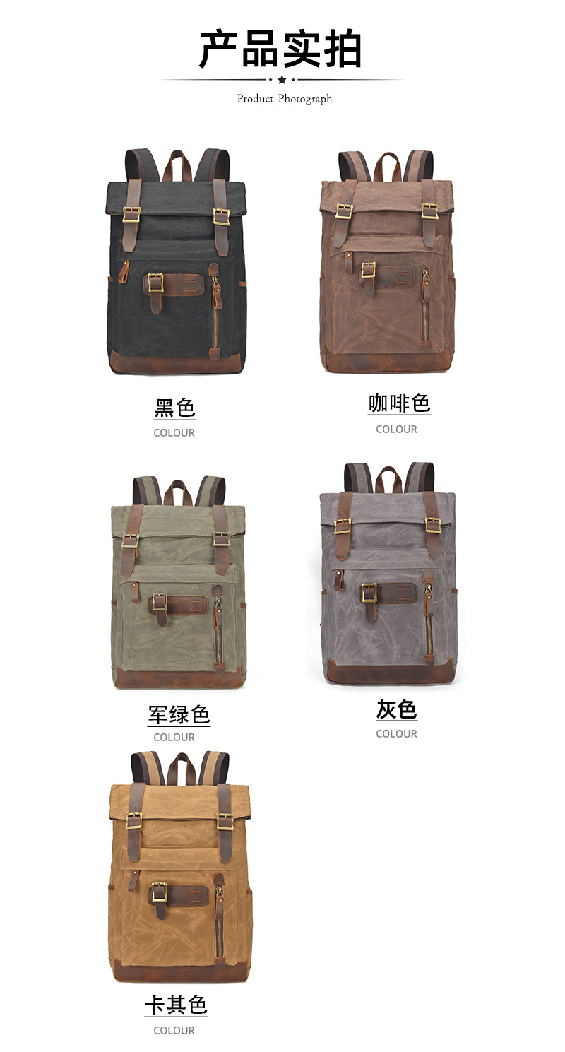 유럽과 미국의 빈티지 암호화 된 오일 왁스 캔버스 배낭 남성 여행 방수 등산 캐주얼 대용량 배낭스토어 가기