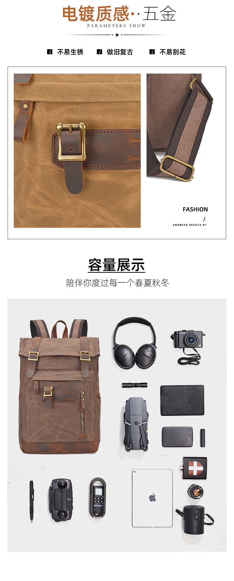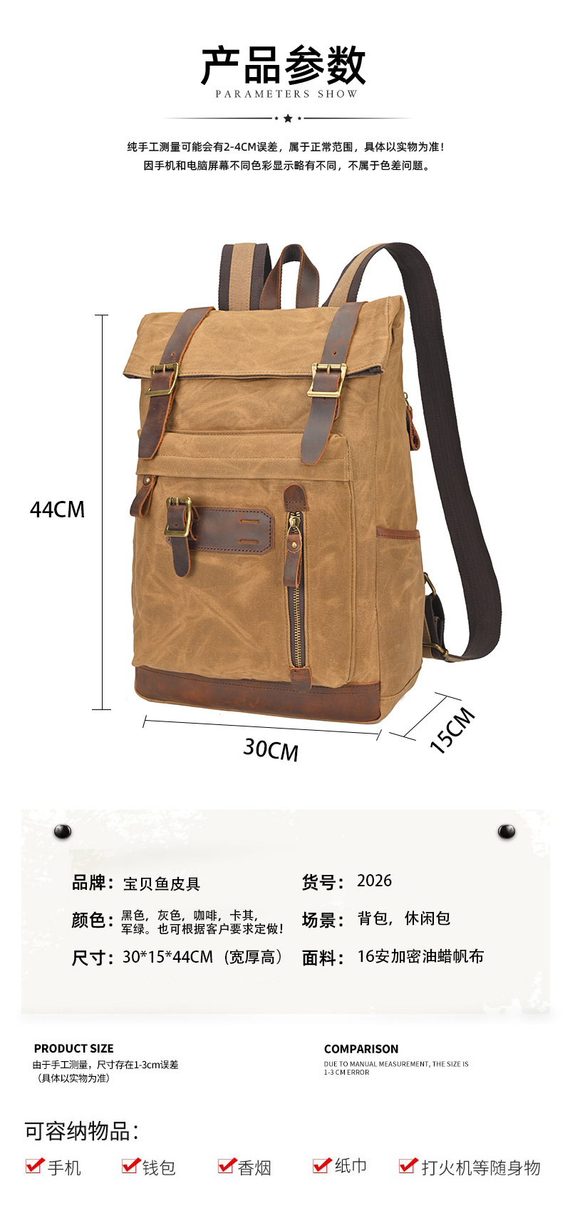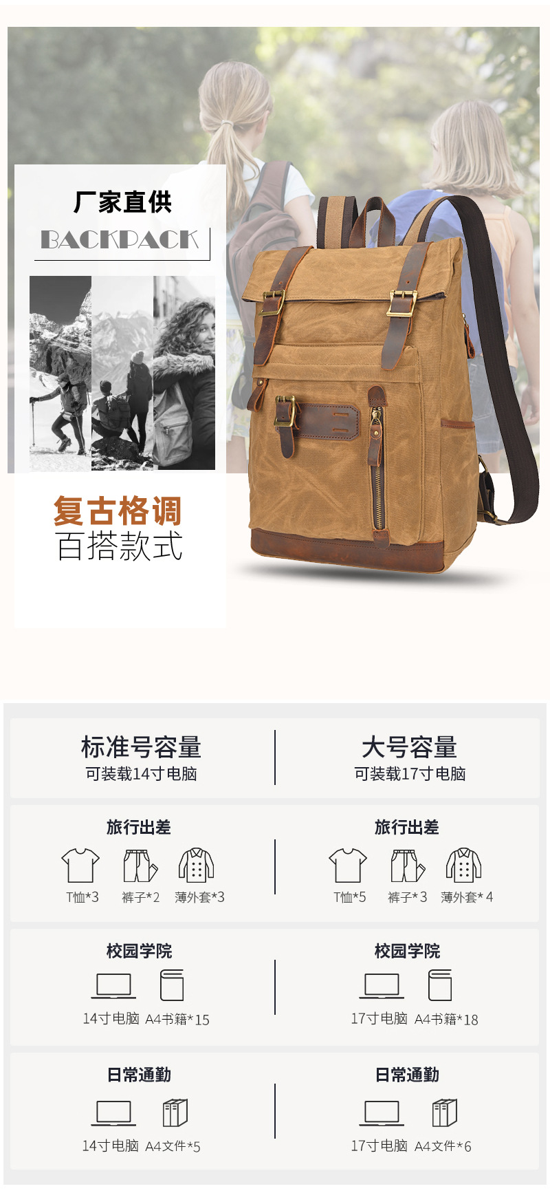 유럽과 미국의 빈티지 암호화 된 오일 왁스 캔버스 배낭 남성 여행 방수 등산 캐주얼 대용량 배낭스토어 가기