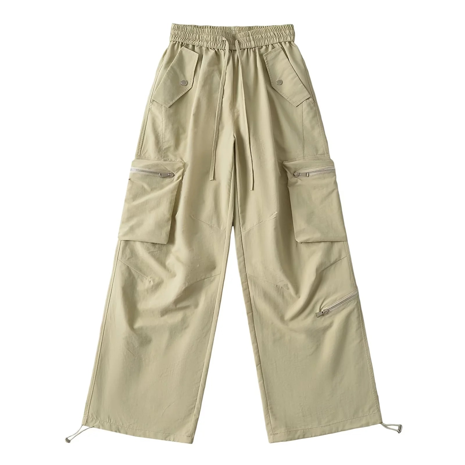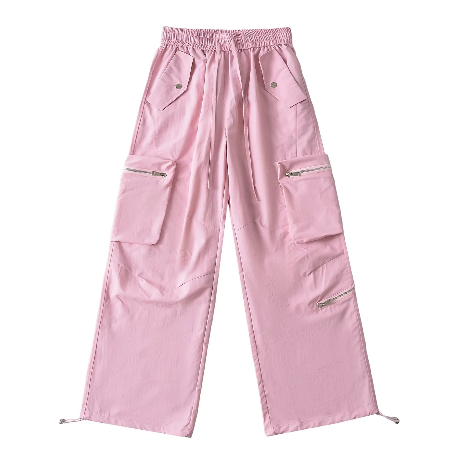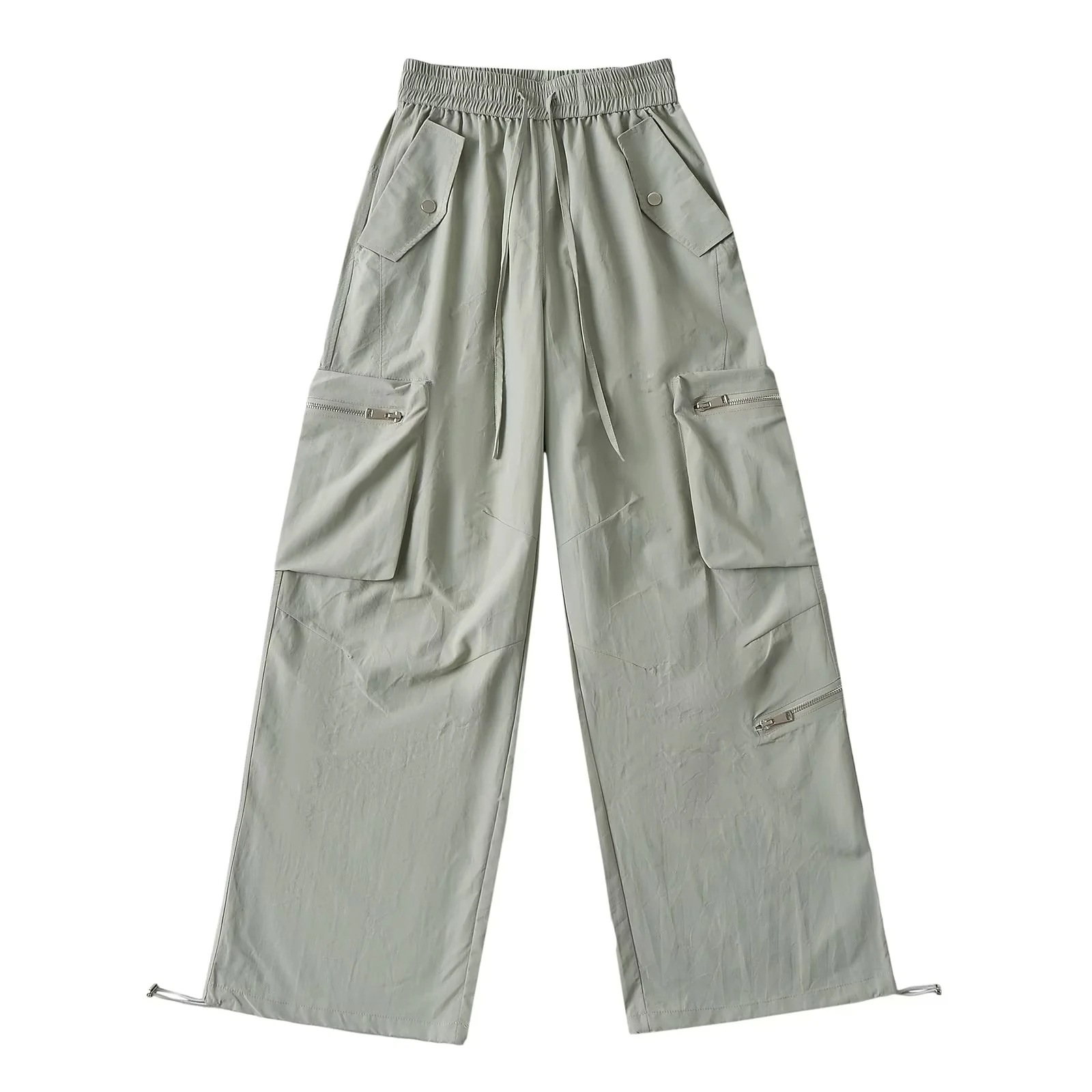 아메리칸 스타일 얇은 빠른 건조 오버볼 여성 여름 작은 직선 느슨한 큰 포켓 발 등산 스포츠 바지