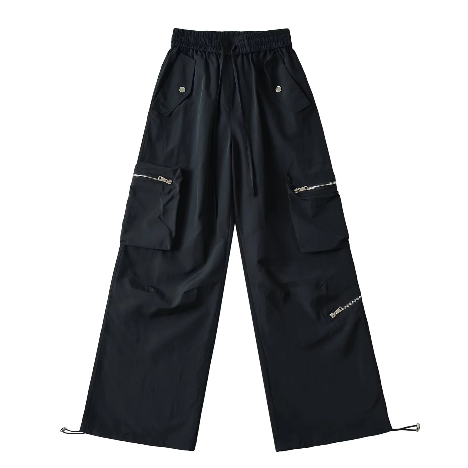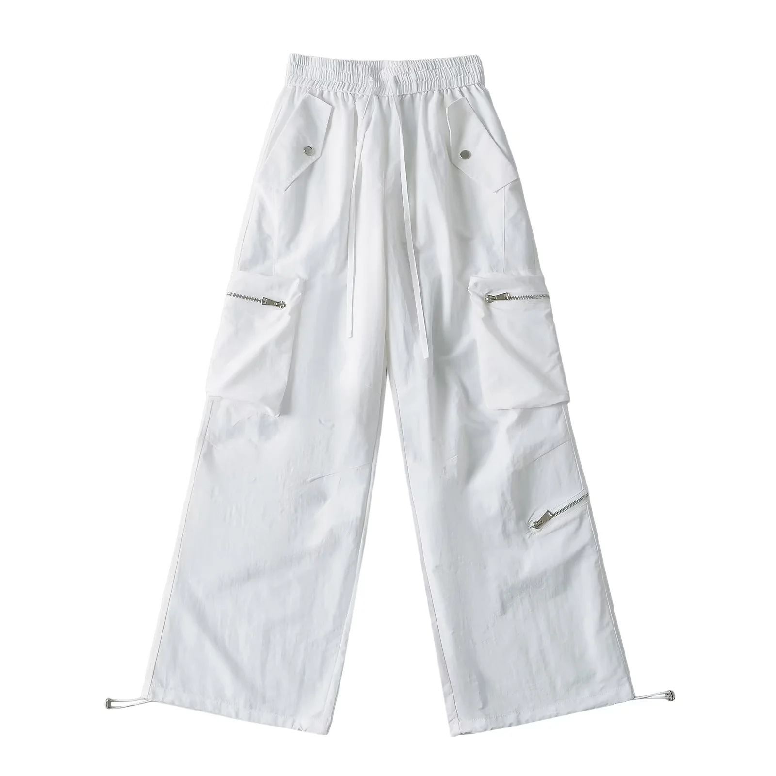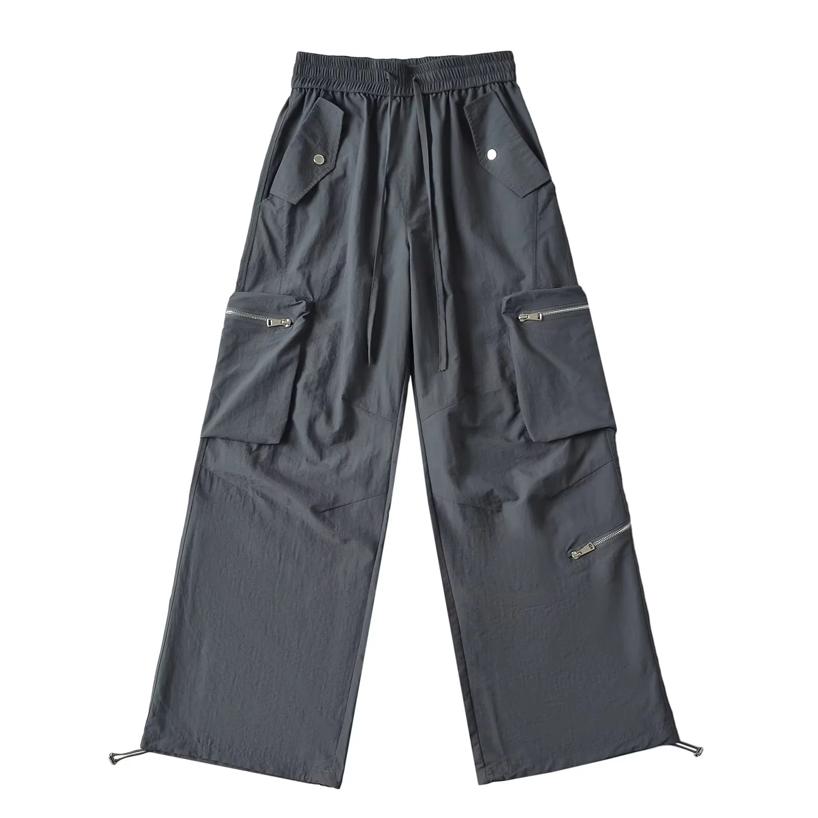 아메리칸 스타일 얇은 빠른 건조 오버볼 여성 여름 작은 직선 느슨한 큰 포켓 발 등산 스포츠 바지