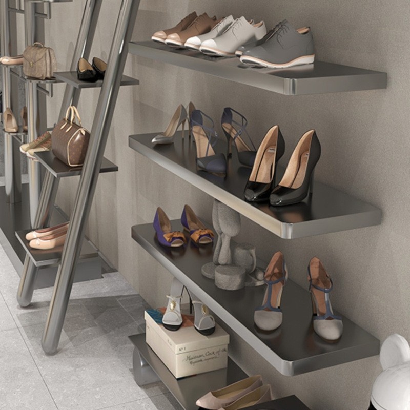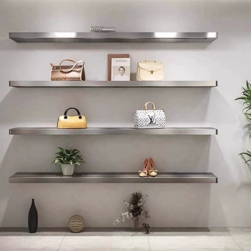 의류점 신발점 가방 진열대 스테인리스 벽걸이 다층 진열대 일자형 디스플레이 선반 벽걸이형