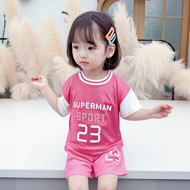 새로운 여름 어린이 스포츠 반팔 농구 세트 세트 가짜 투피스 소년 저지 소녀 훈련 의류 도매스토어 가기