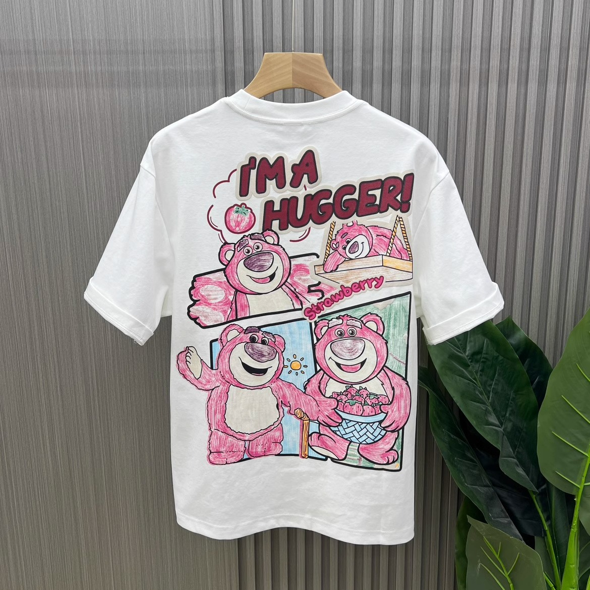 여름 새로운 라운드 넥 딸기 베어 프린트 반팔 티셔츠 커플 느슨한 캐주얼 남성 반소매 티셔츠 청소년 패션 브랜드스토어 가기