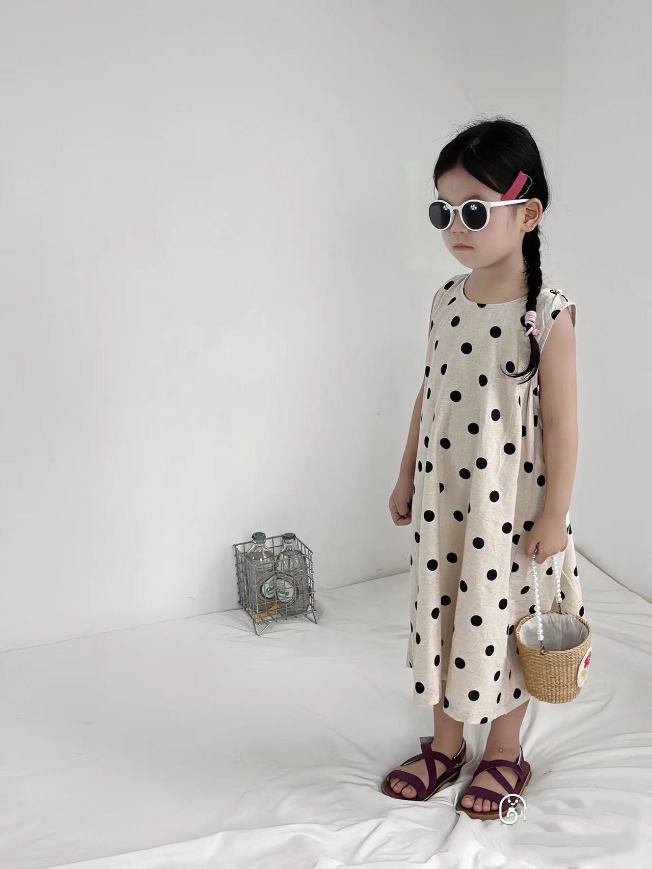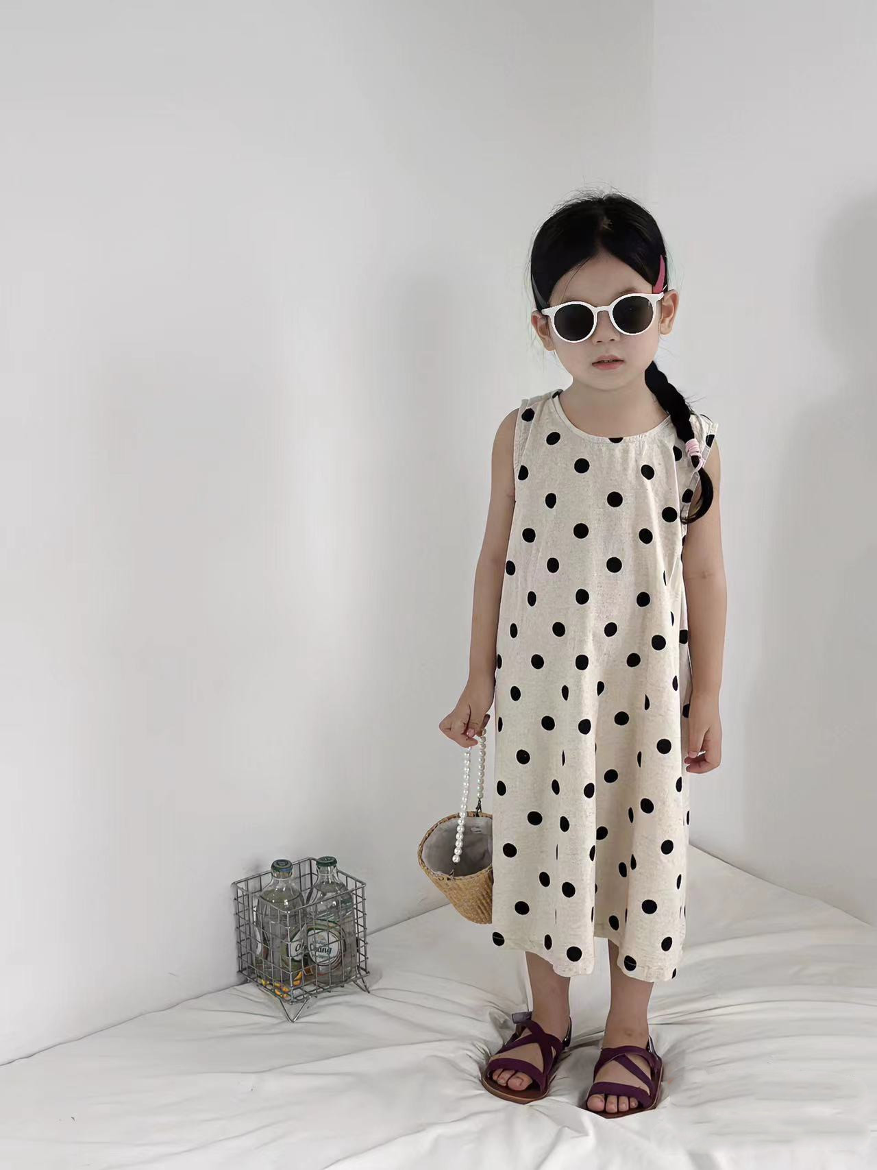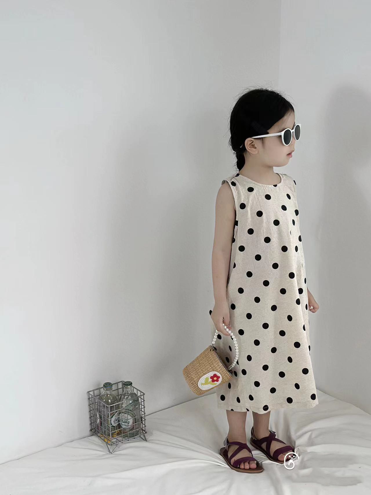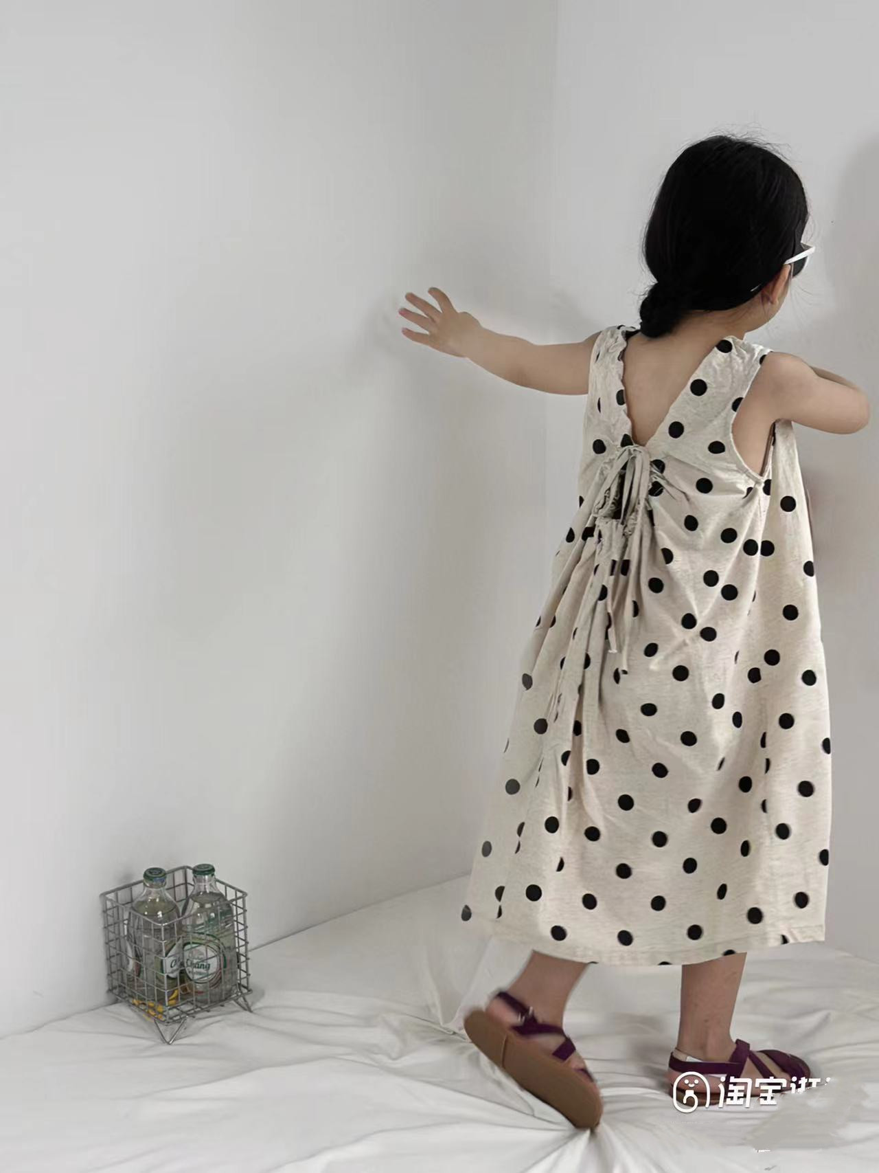 여아용 스커트, 등이 없는 레이스업 도트무늬 롱 드레스, 2025 여름 신상품, 수출용 아동복, 공장 직배송스토어 가기