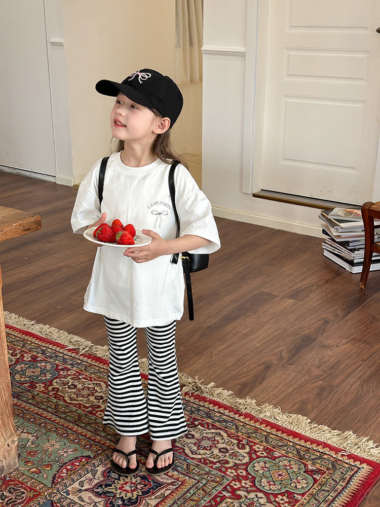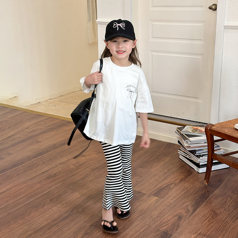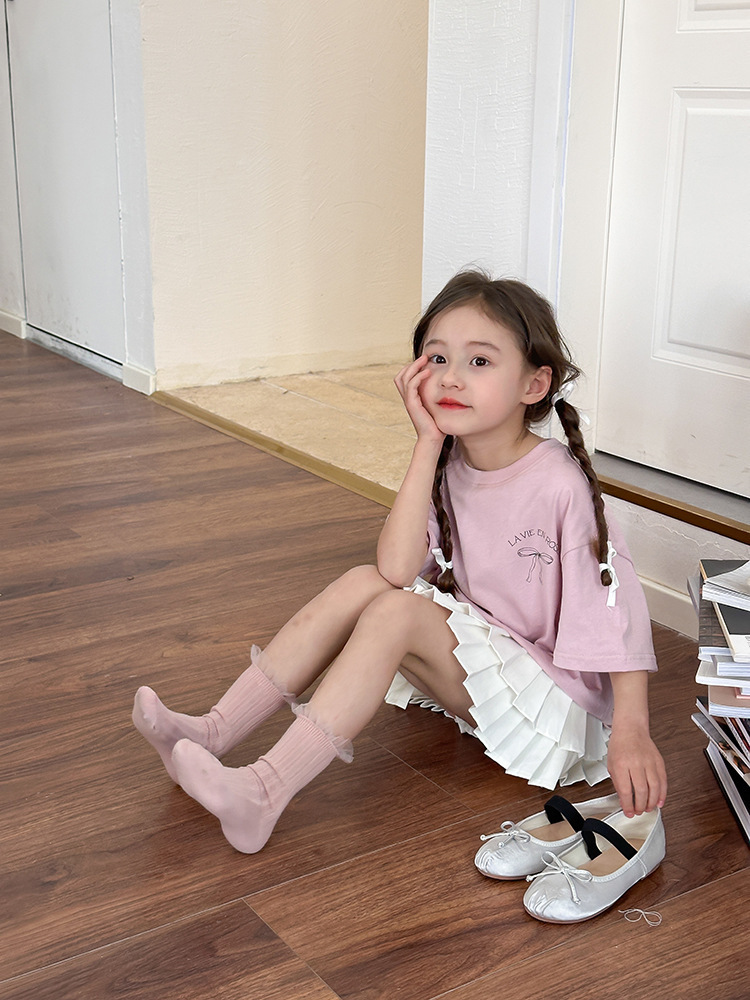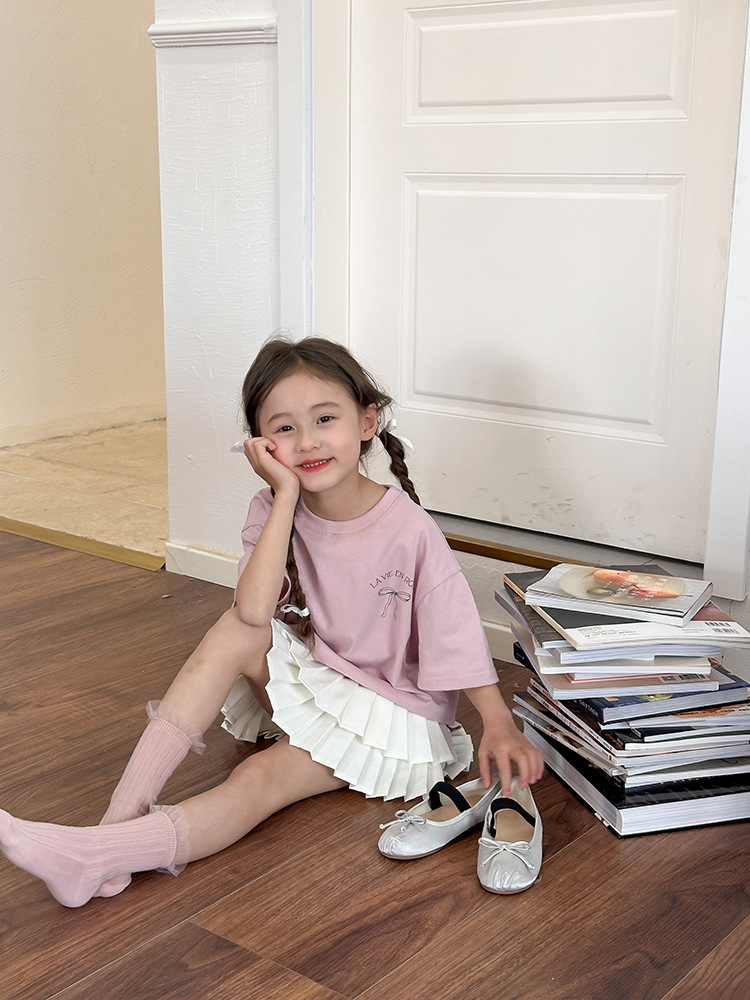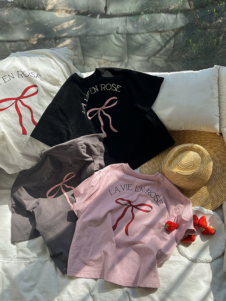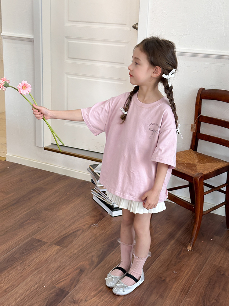 여아 티셔츠 드레스 아동복 여름 스타일 어린이 반팔 중대형 한국 스타일 루즈핏 뒷면 리본 티셔츠 롱 캐주얼