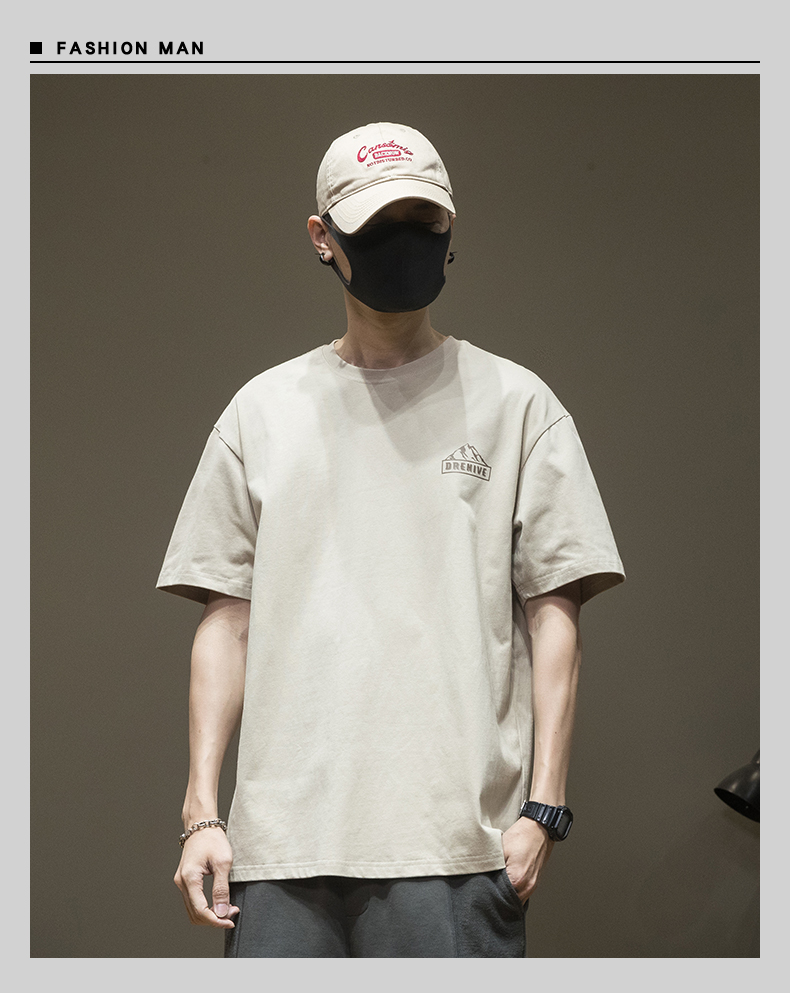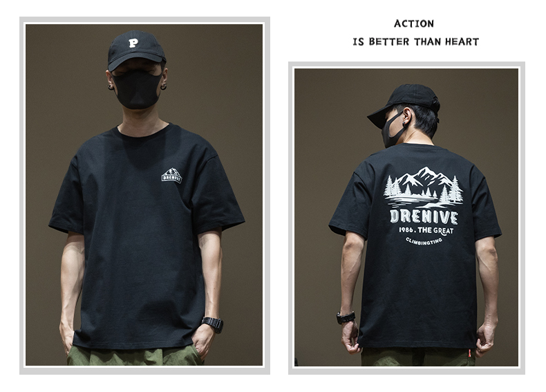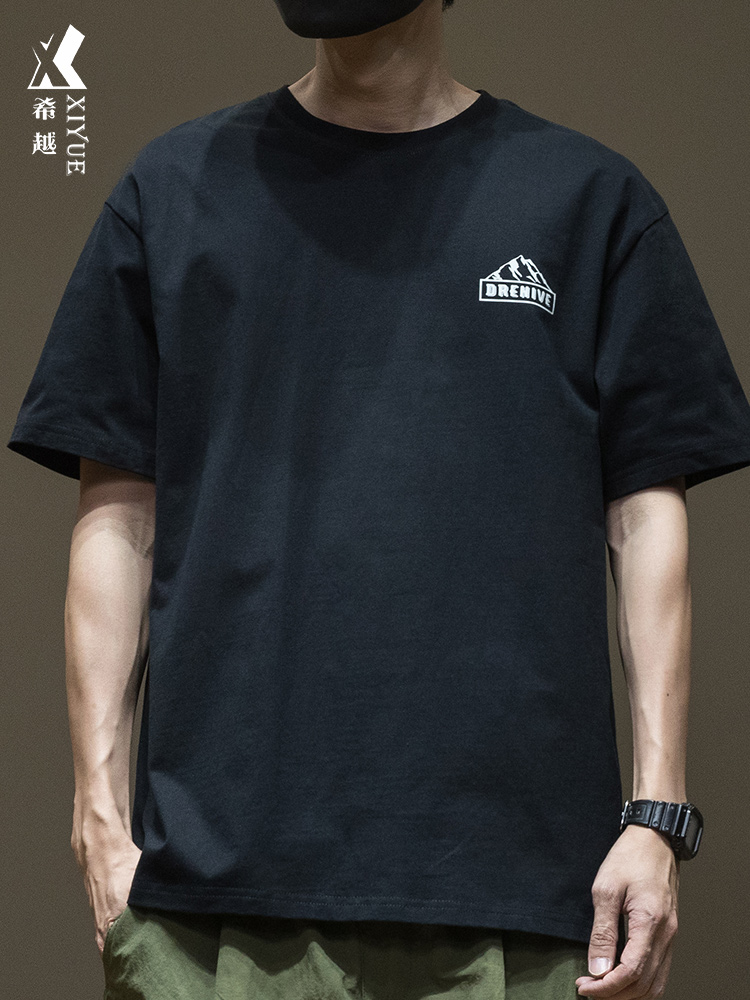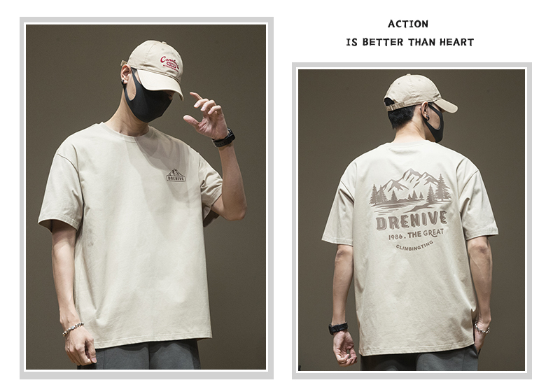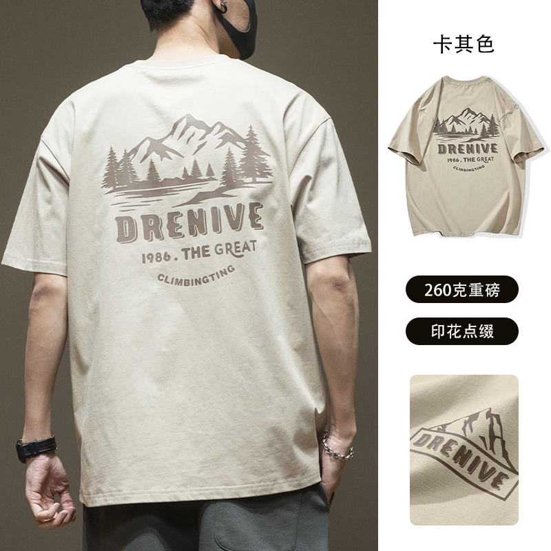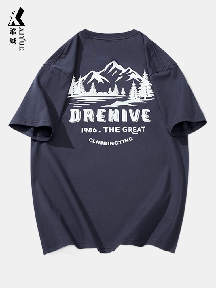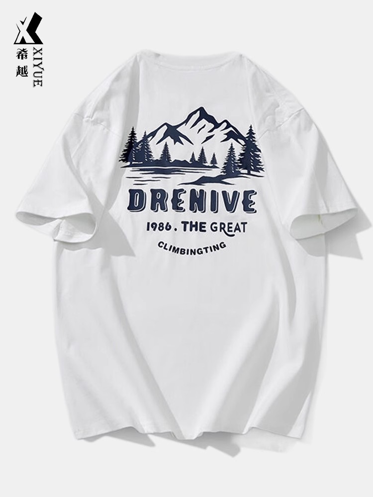 3 핀 코튼 마운틴 프린트 반팔 티셔츠 남자 2024 년 여름 새로운 느슨한 플러스 사이즈 반소매 티셔츠 트렌디스토어 가기